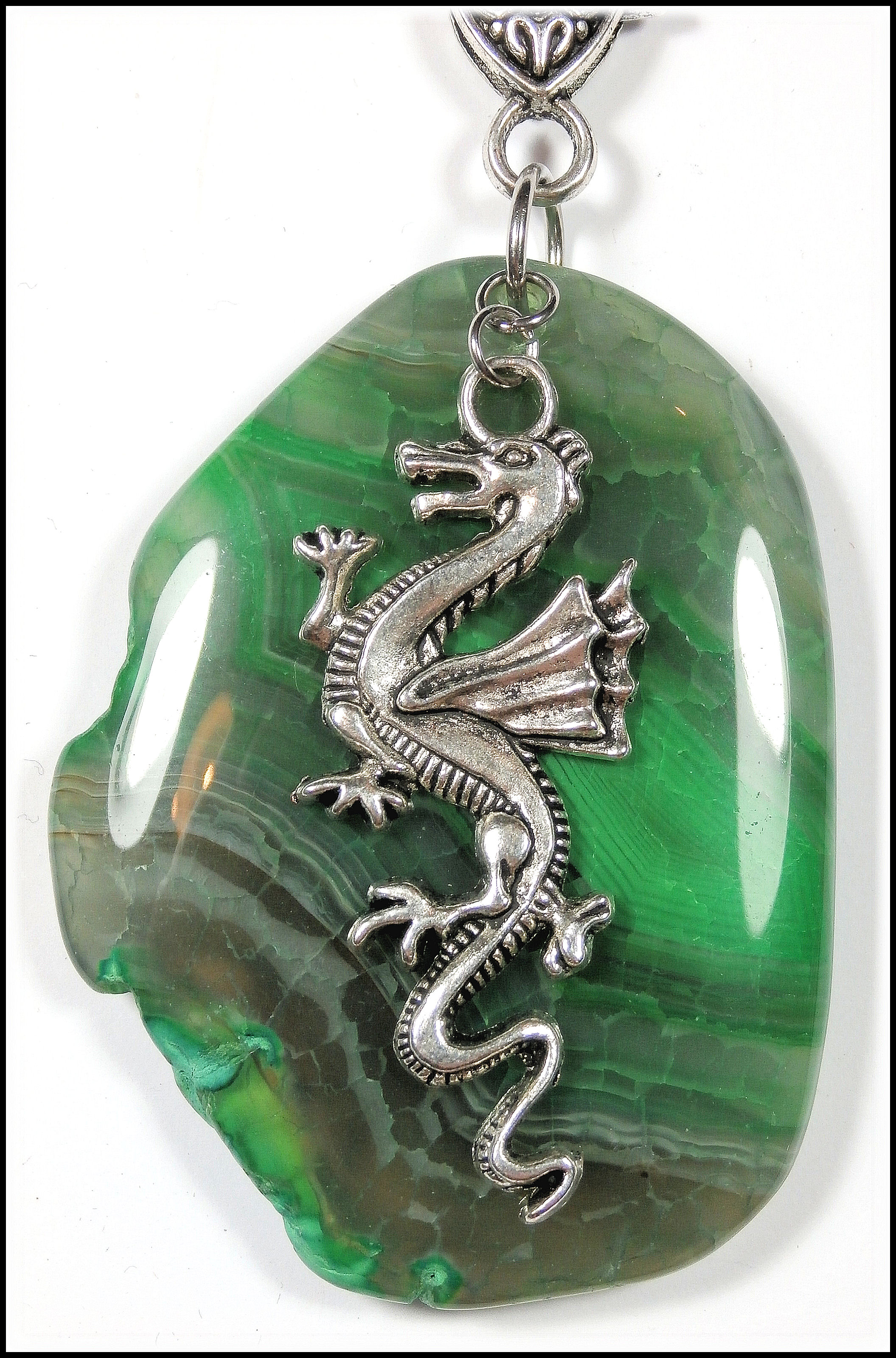 Amulett "Grüner Achat & Drache"