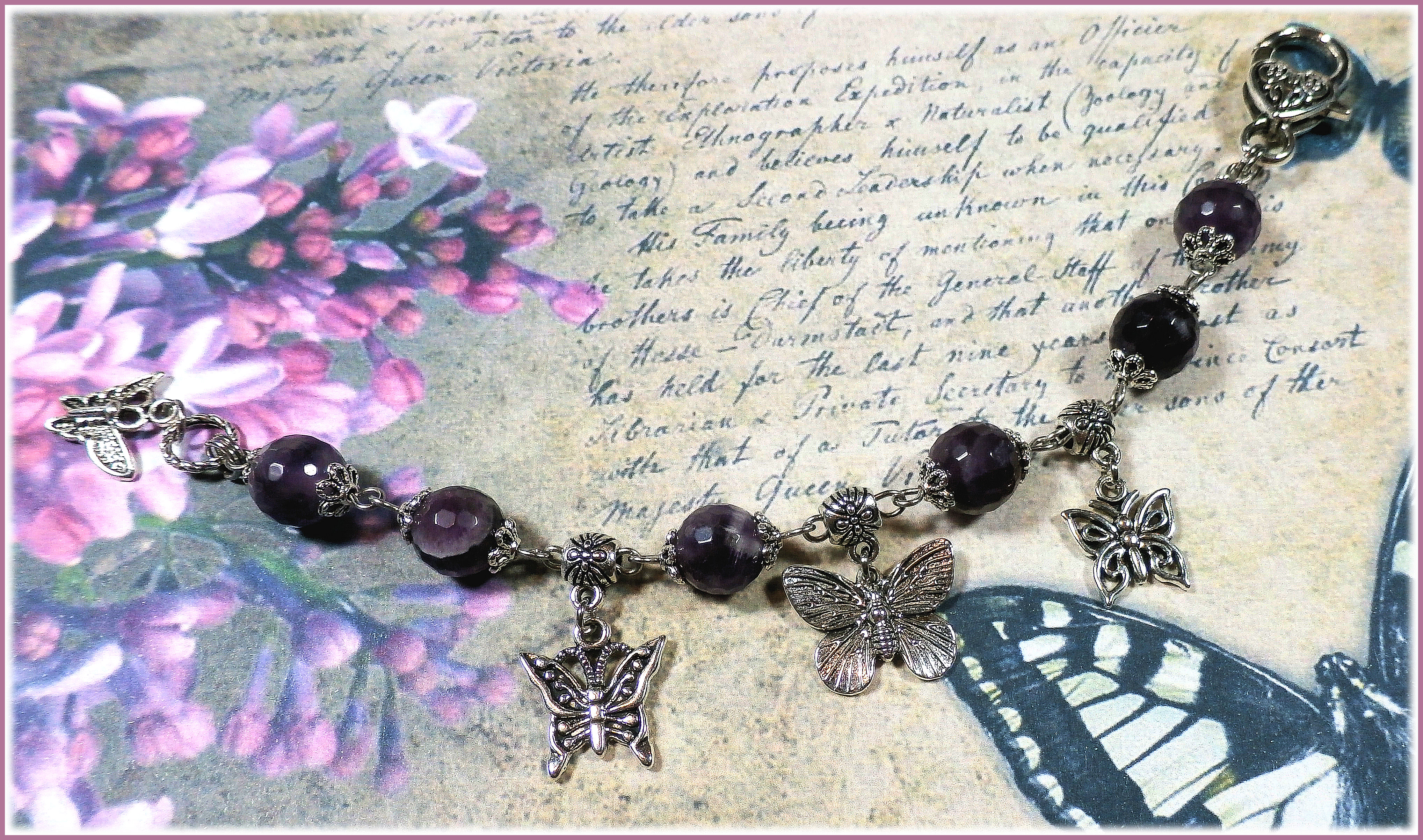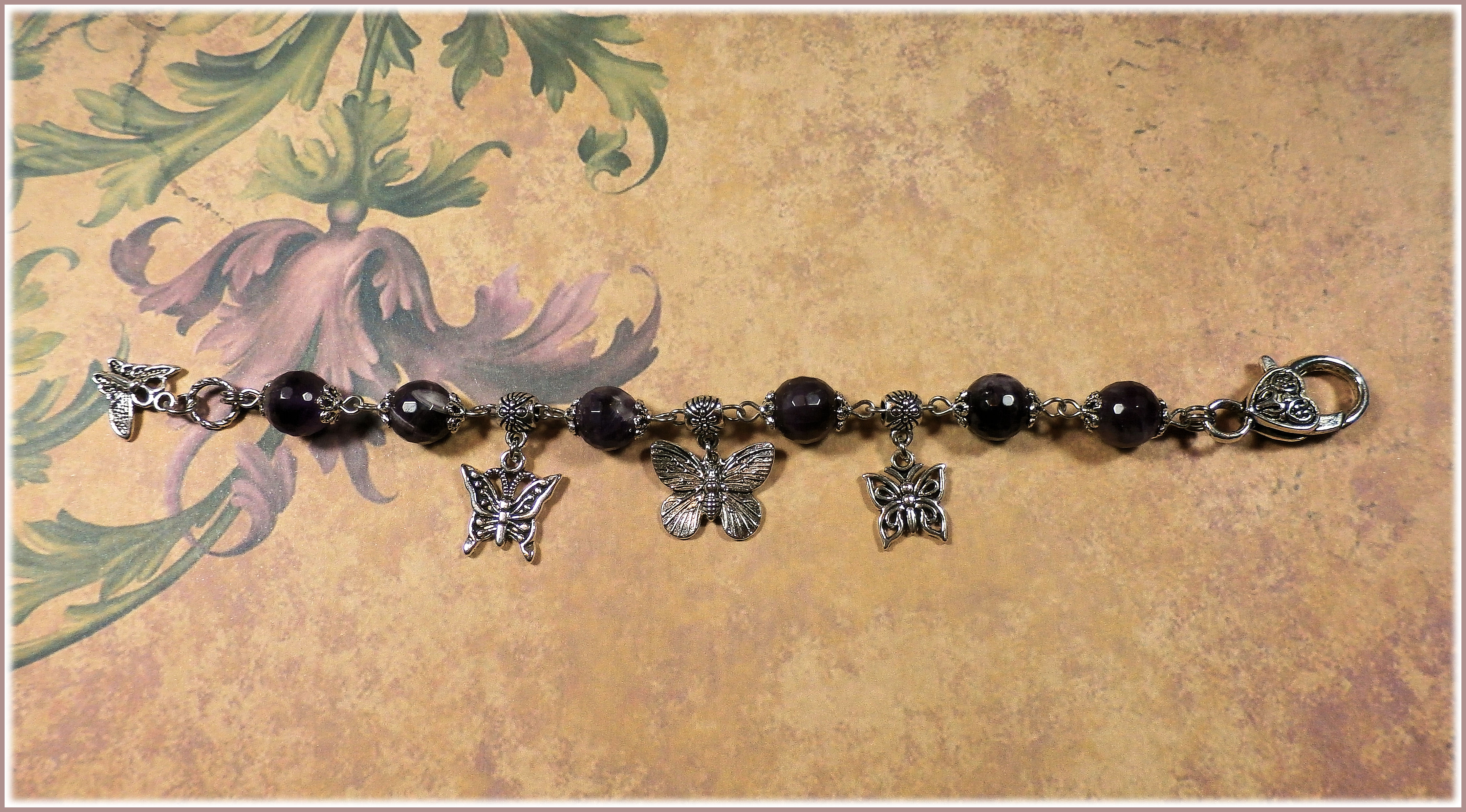 Armband mit Amethyst und Schmetterlingen