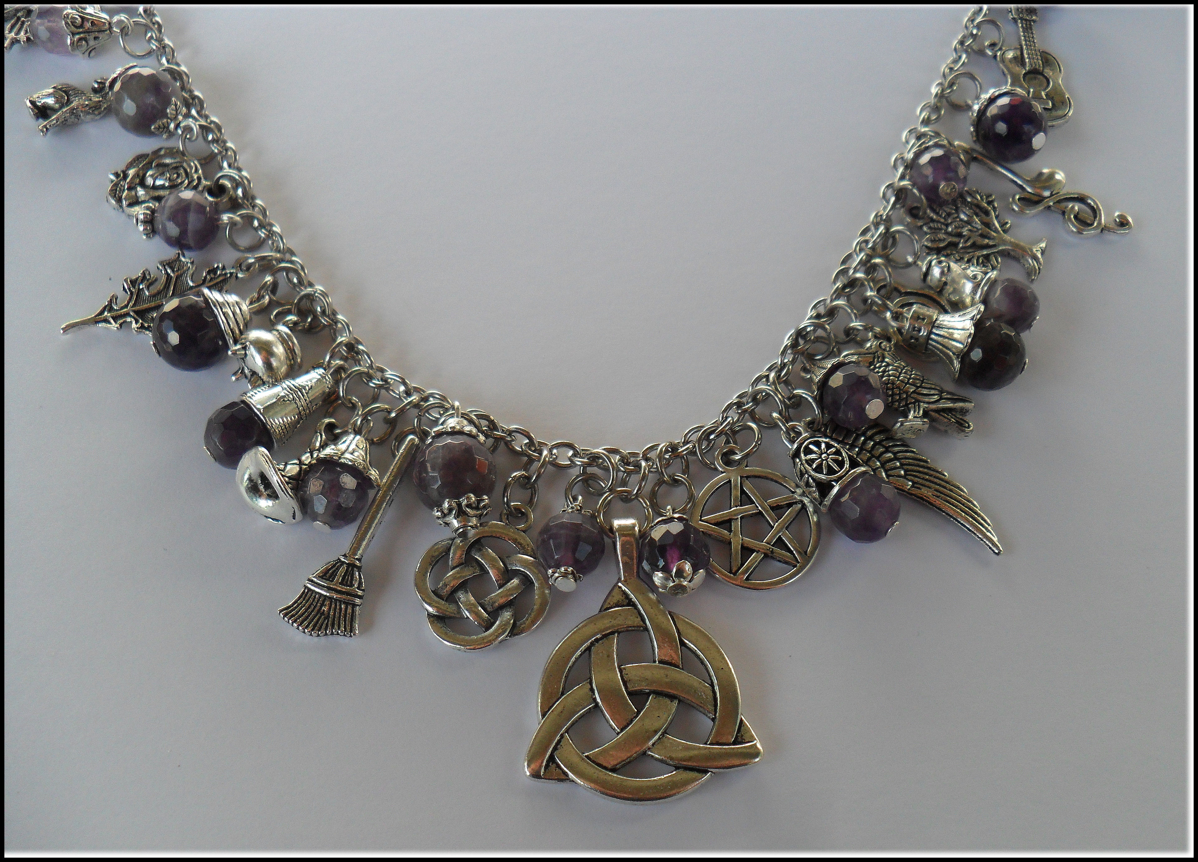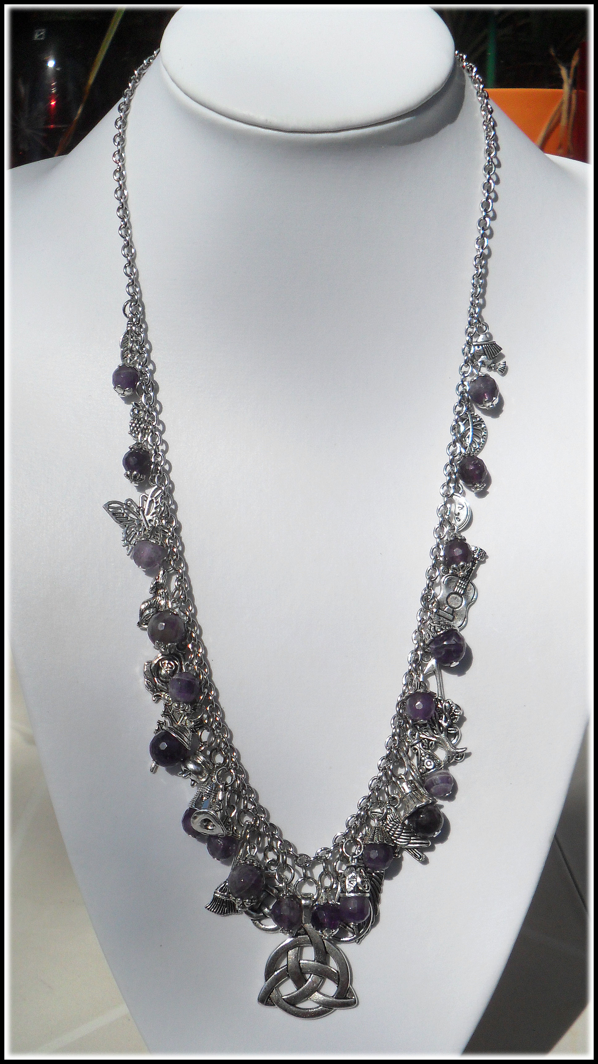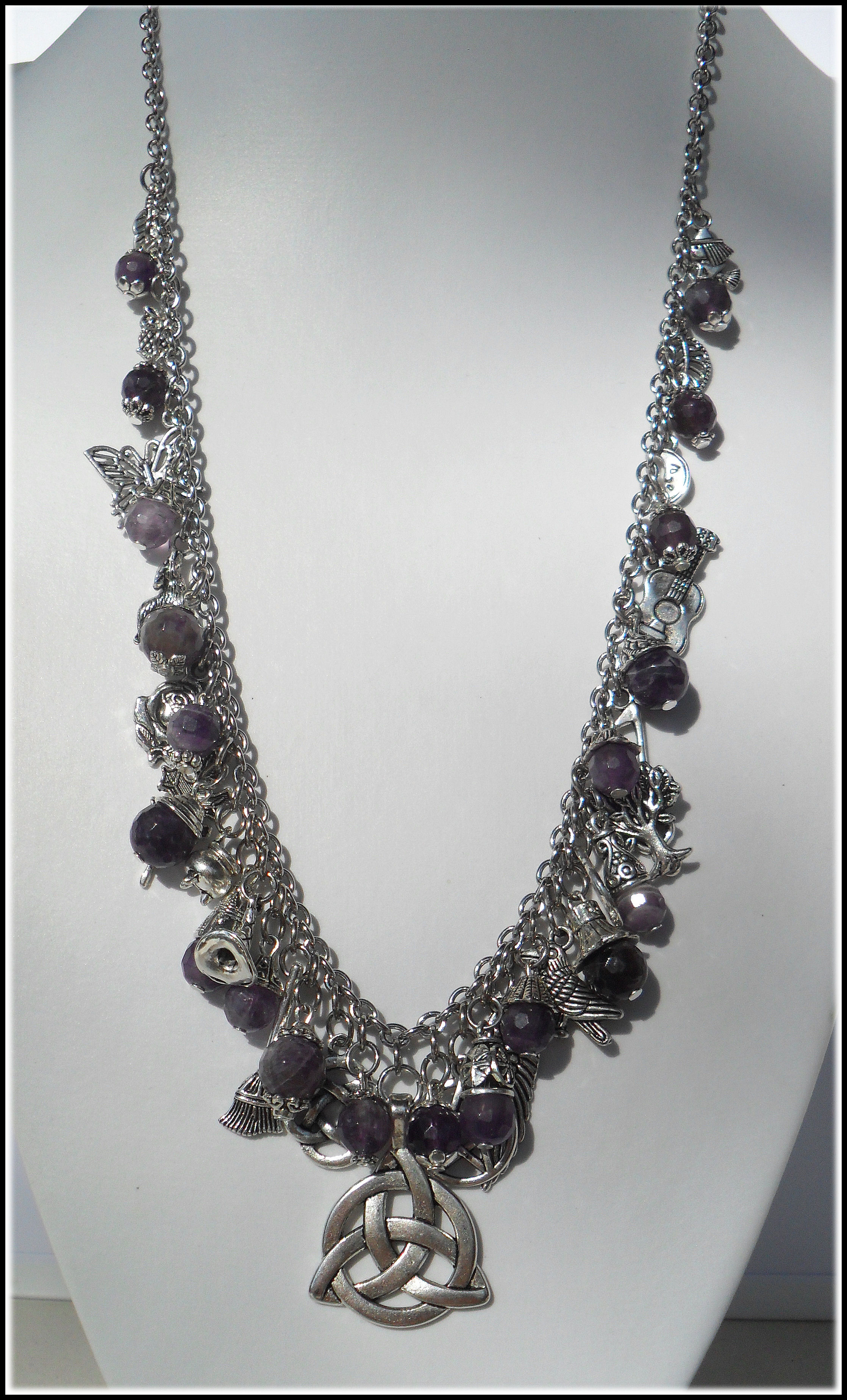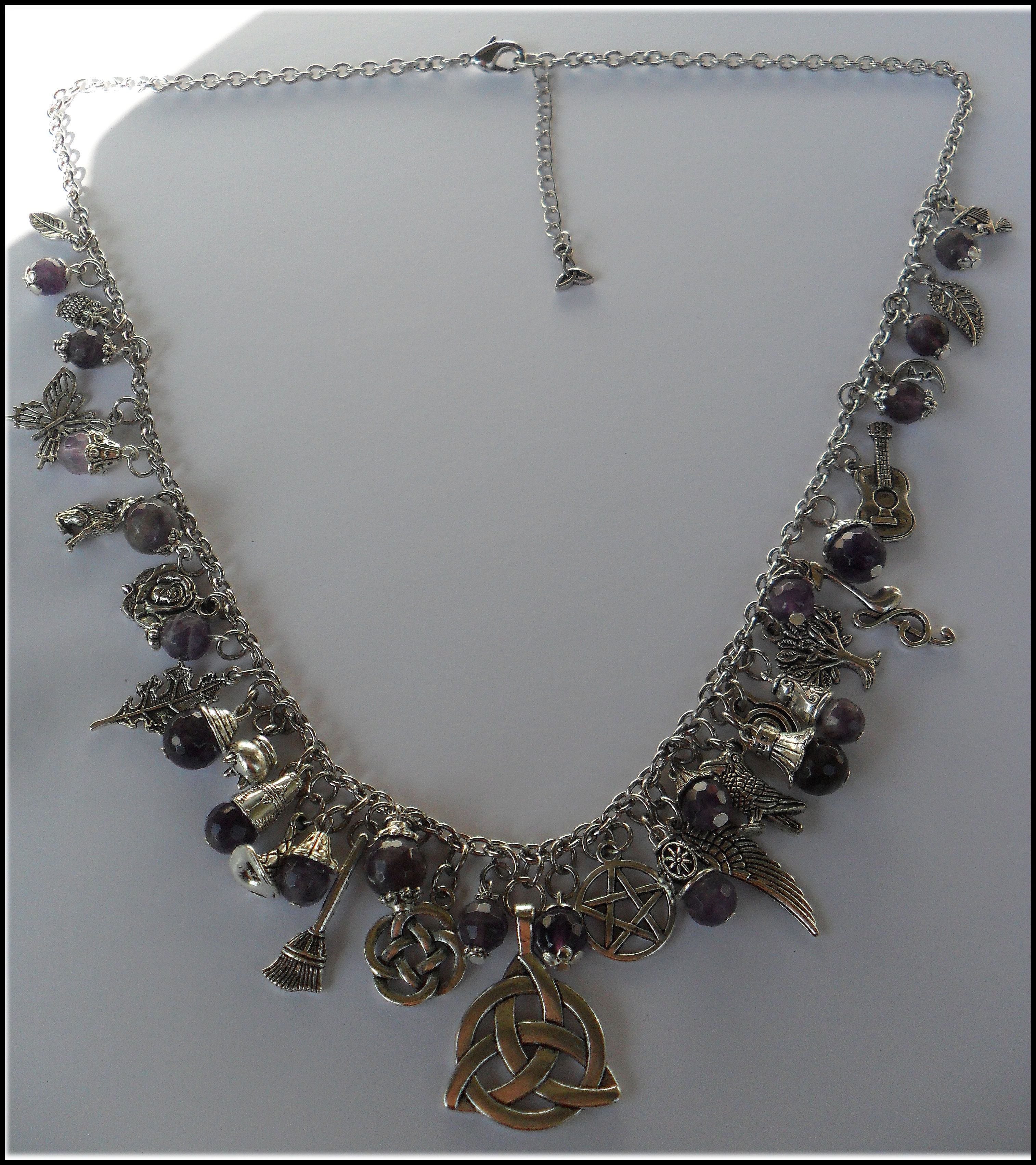 Diese Bettelkette wurde ispiriert durch unser Bettelarmband "Power of Amethyst Witchcraft", wurde aber in besonderer Länge nach Kundenwunsch mit einigen speziellen Charmanhängern versehen.