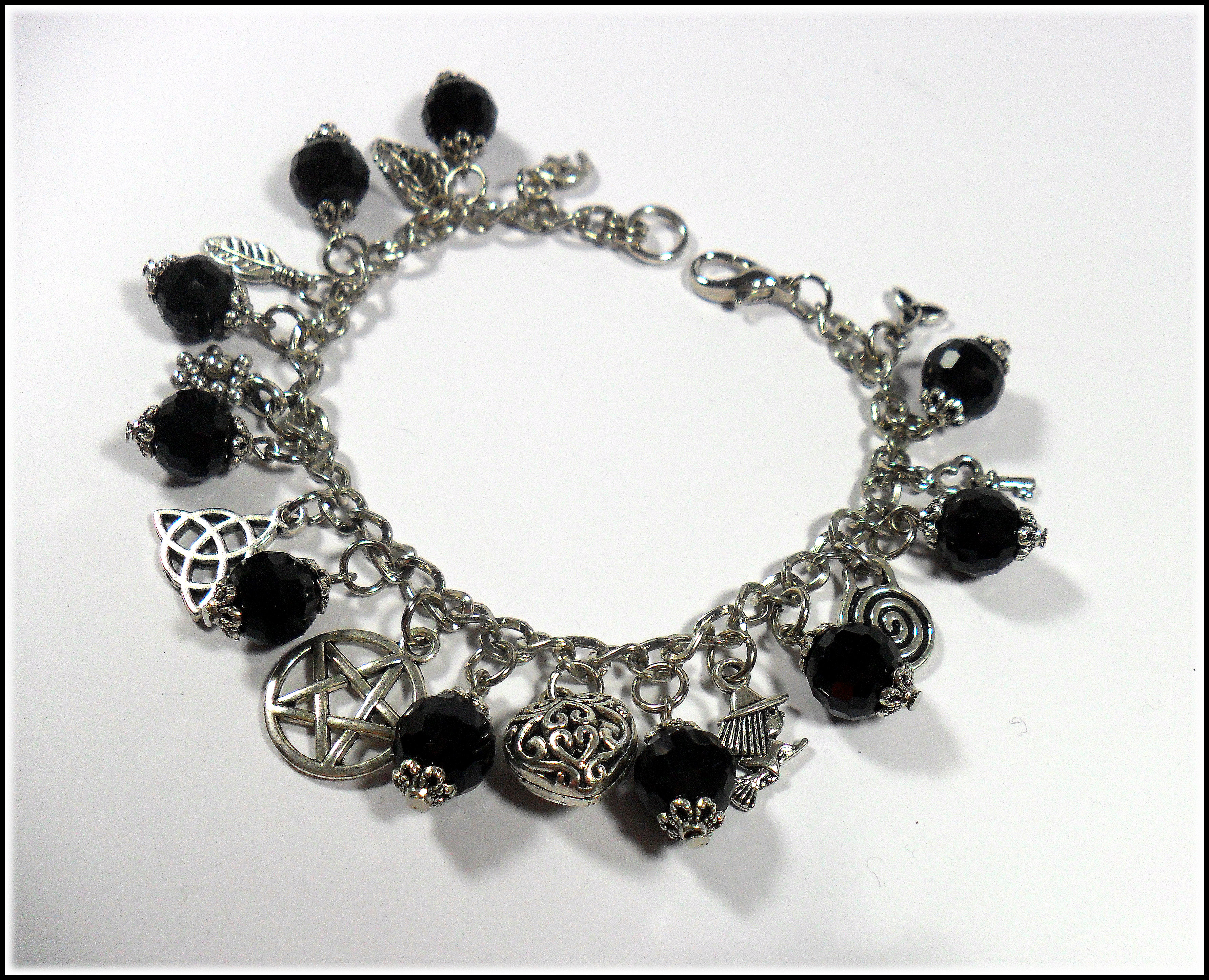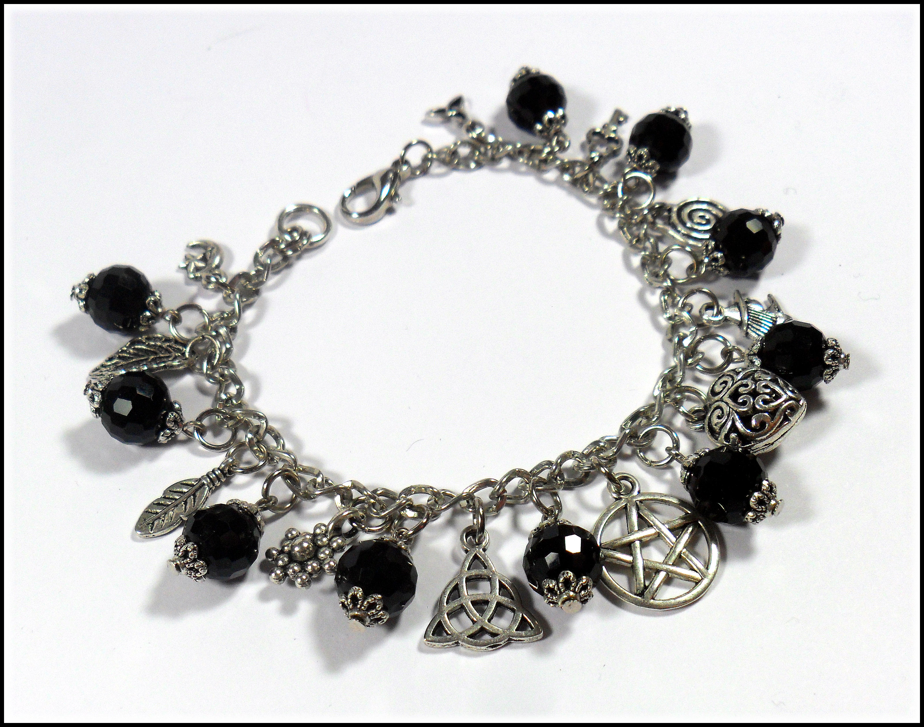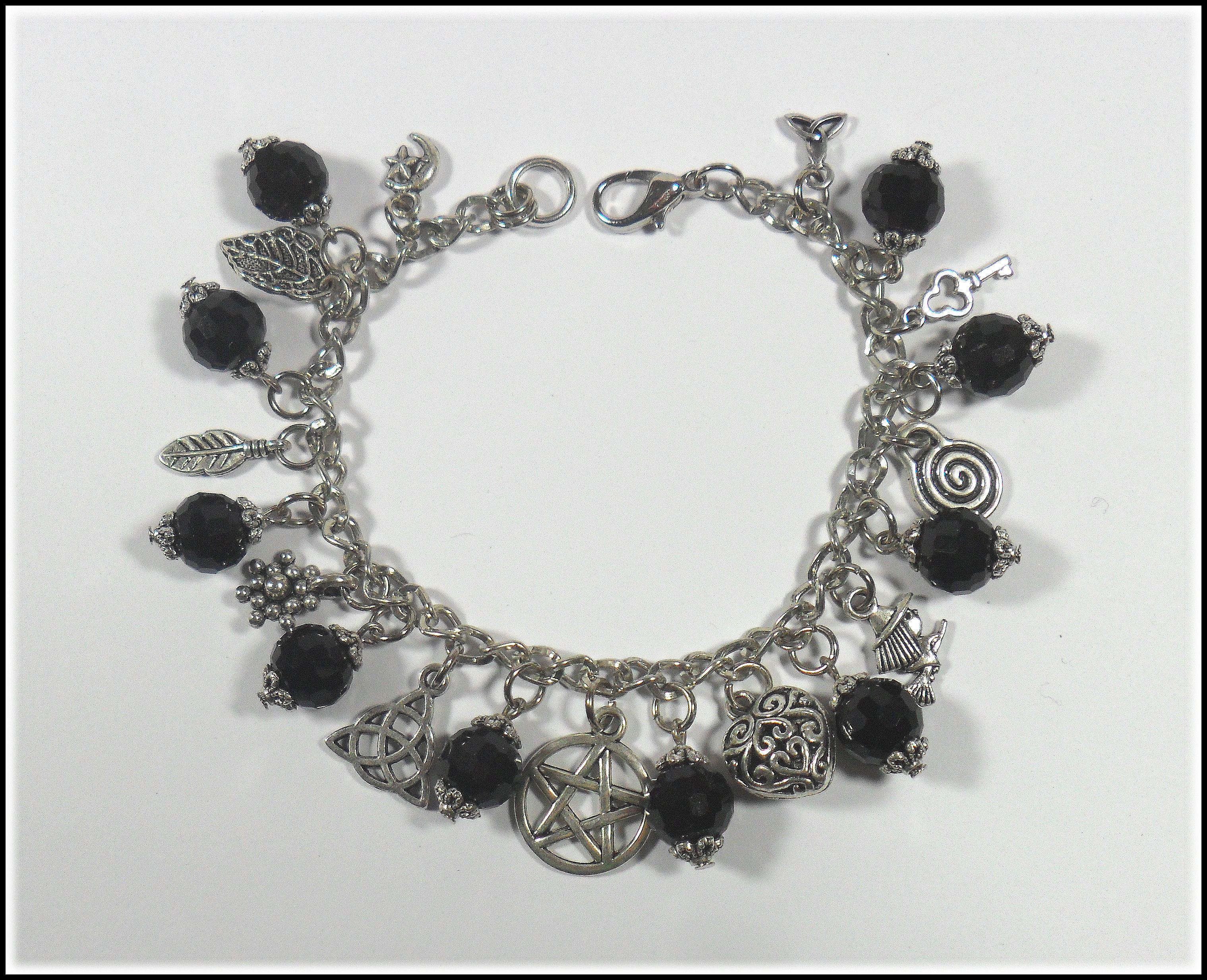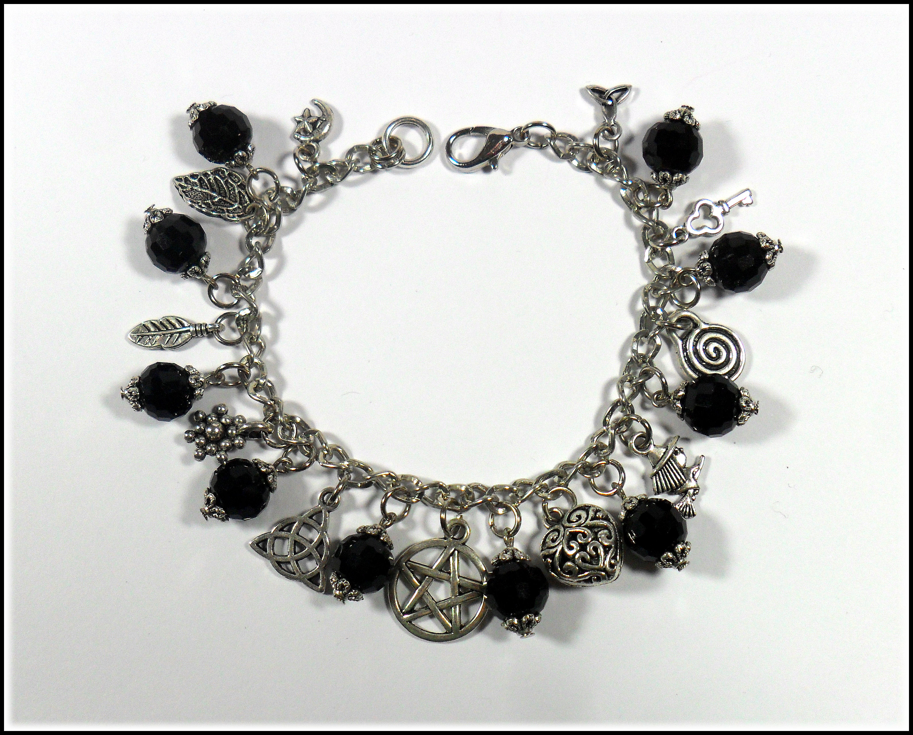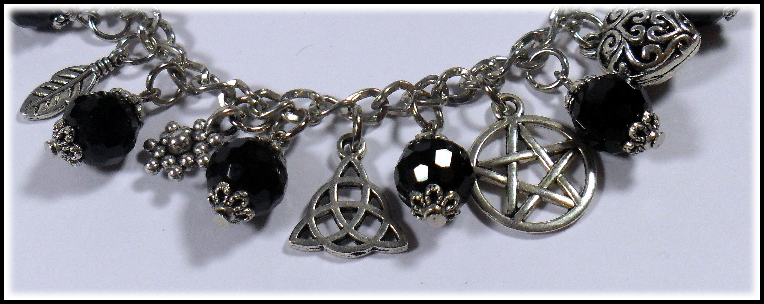 Black Witchcraft“ ist ein traumhaft schönes Schmuckstück, das schwarze Glasschliffperlen aus Tschechien und Symbole voller tiefer Bedeutung und Magie vereint.