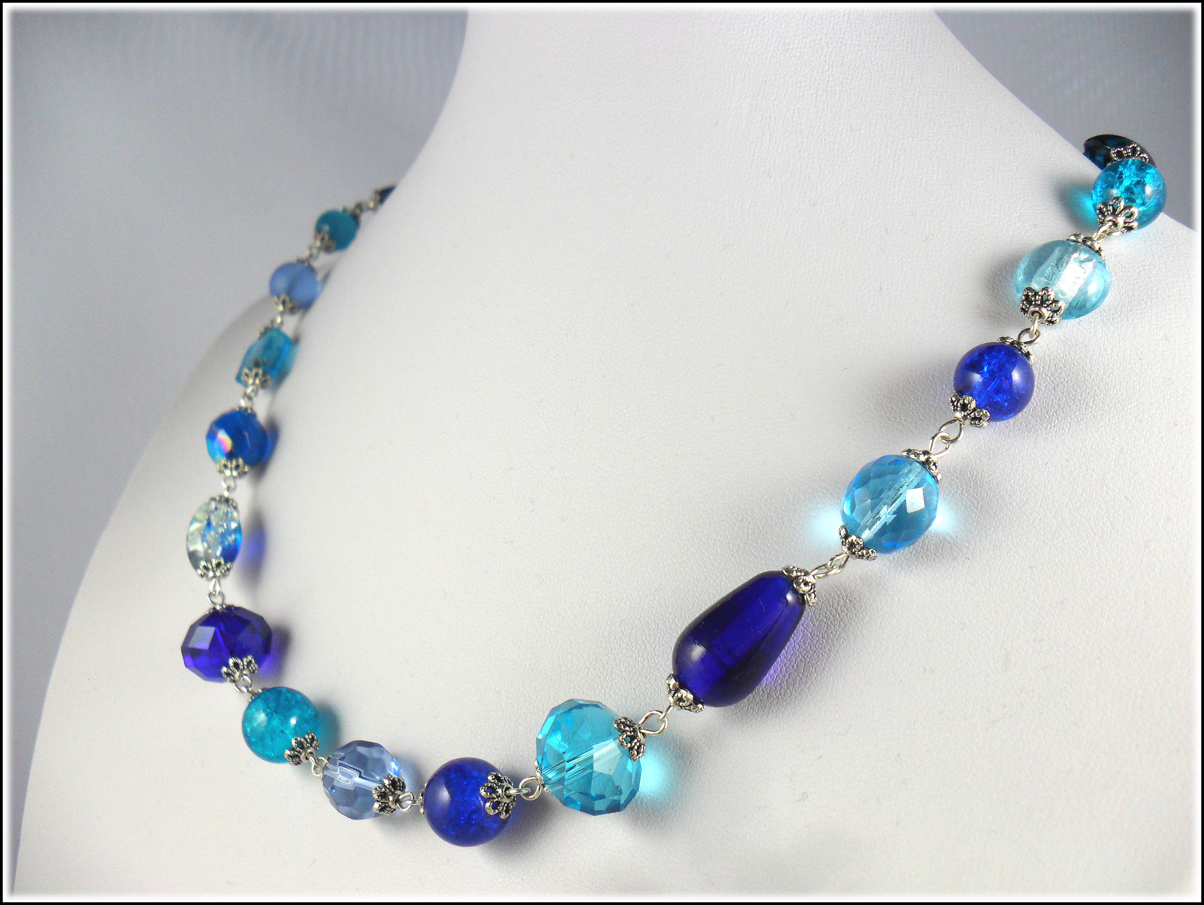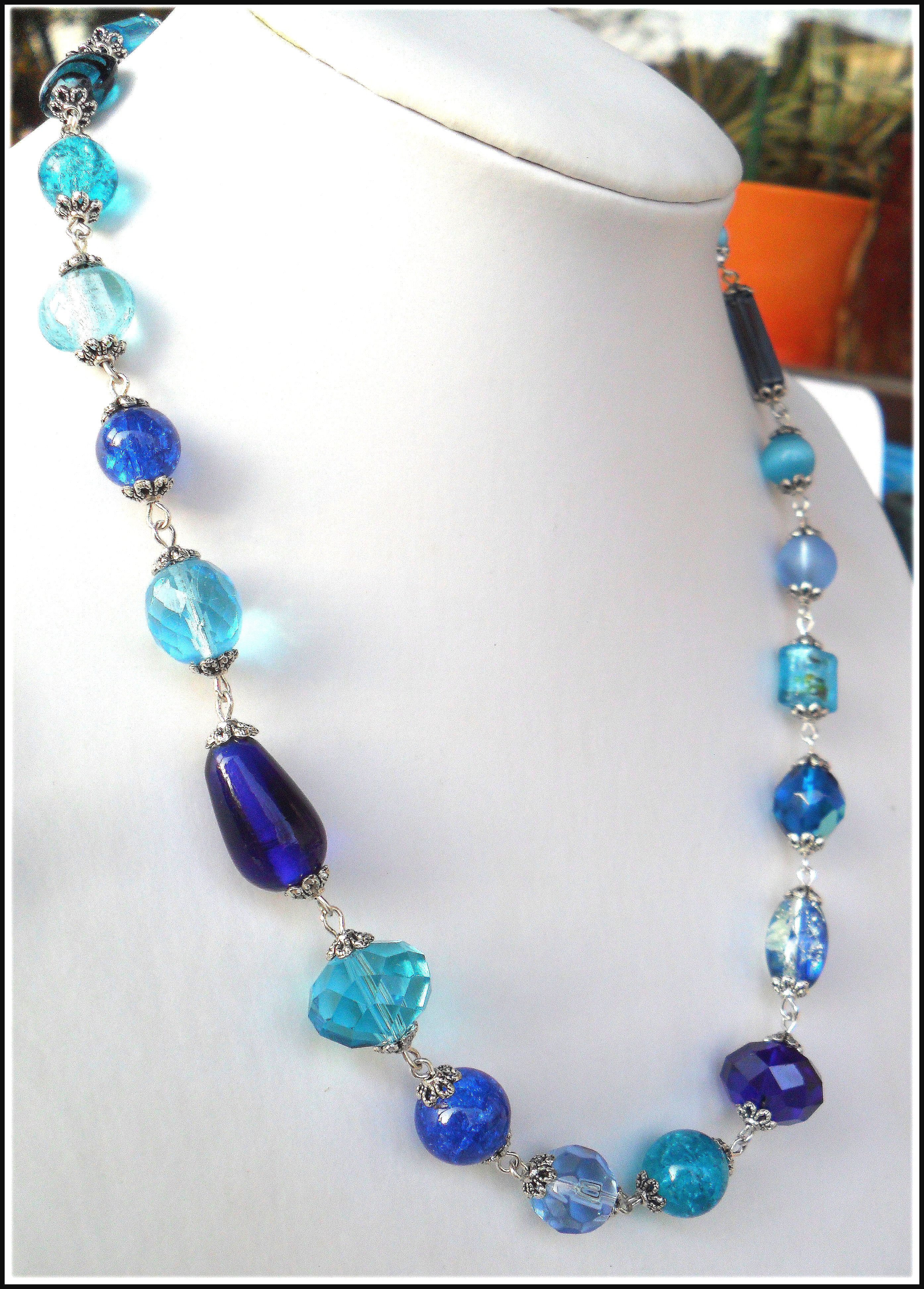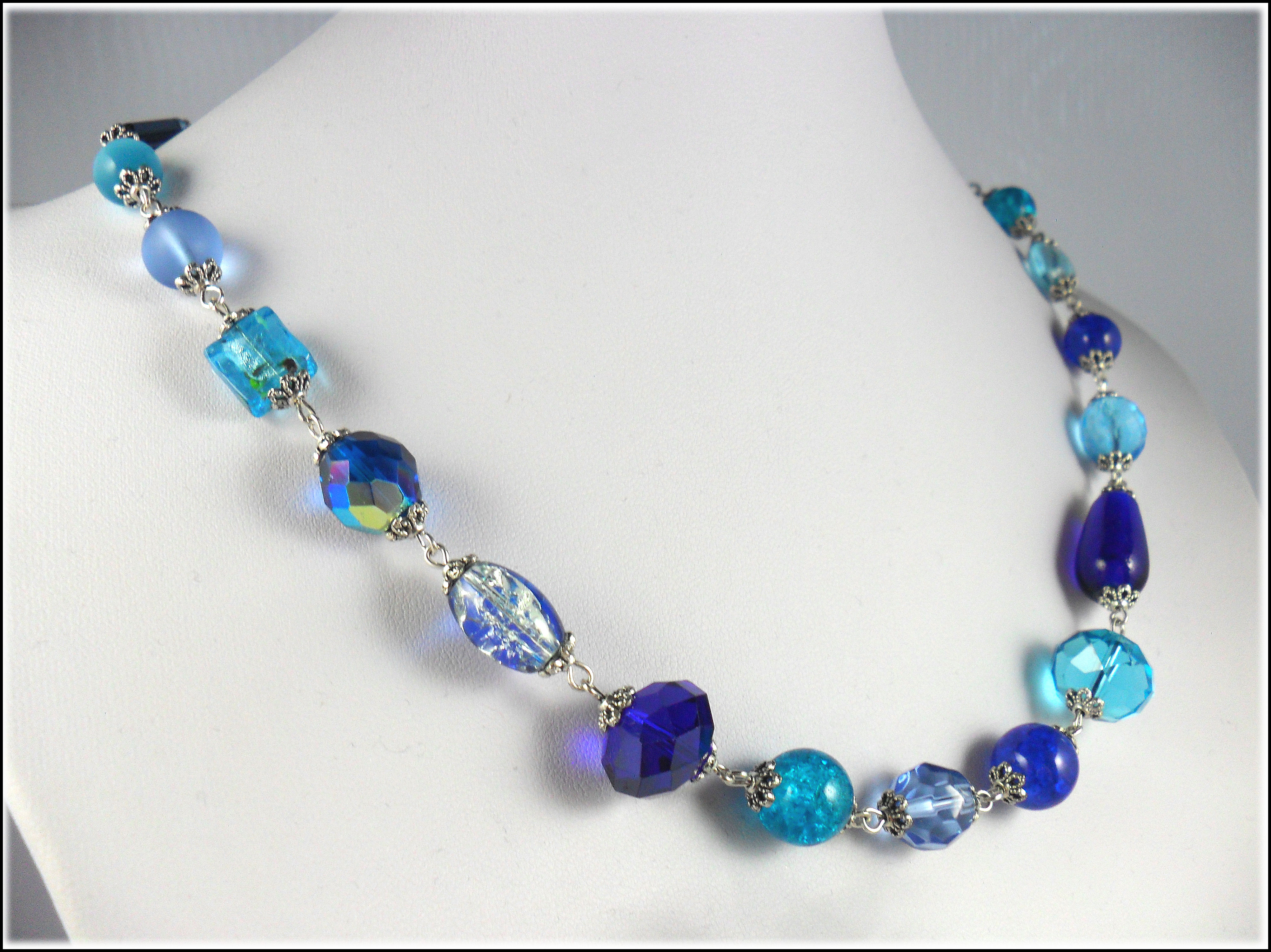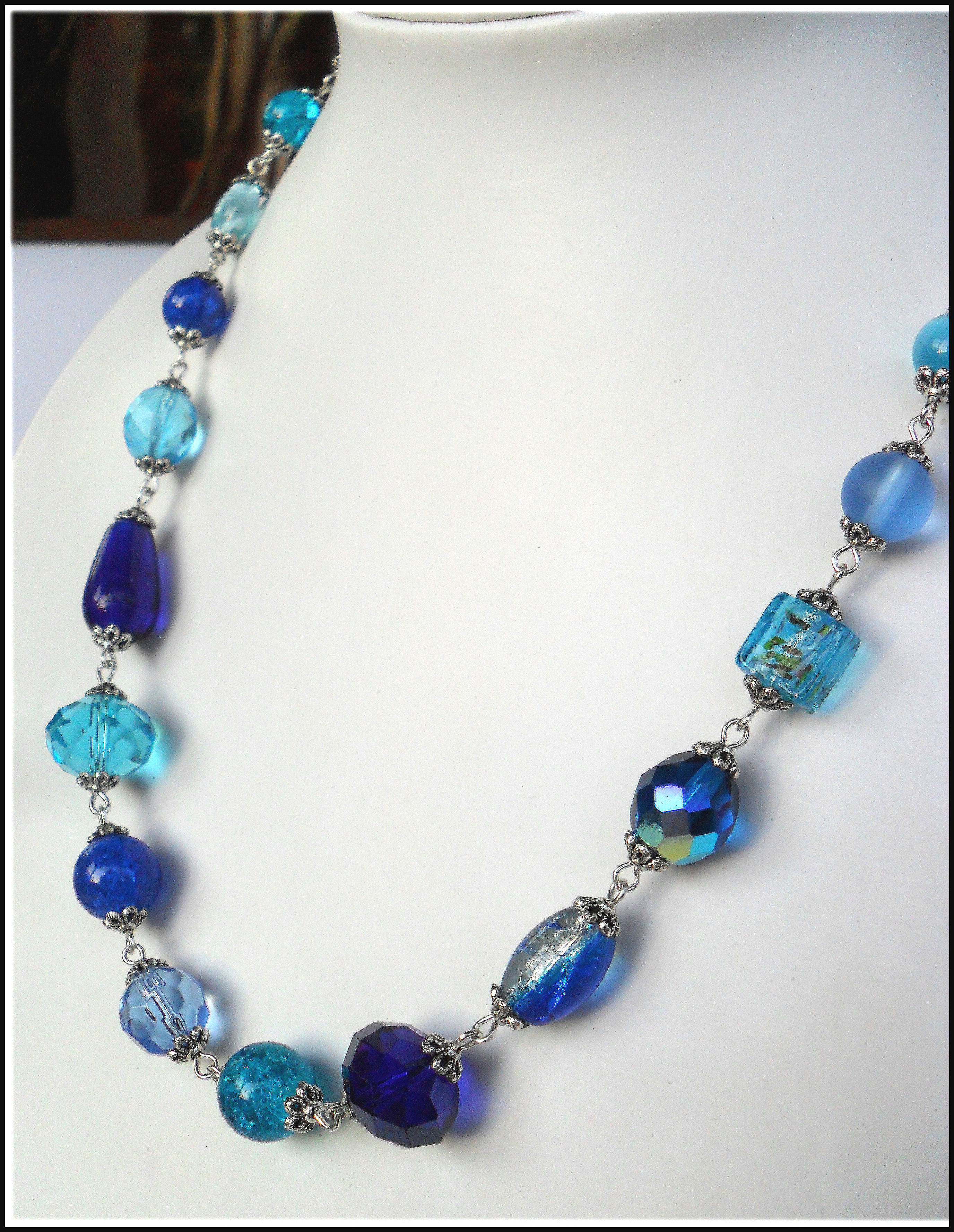 Unsere neueste Glasperlenkette steht dieses Mal unter dem Motto „Lieblingsblau“ – Himmelblau, Meerblau, Veilchenblau, Blassblau, Nachtblau, Taubenblau, Königsblau, Türkisblau, Kornblumenblau, Blaubeere… Hauptsache Blau!!