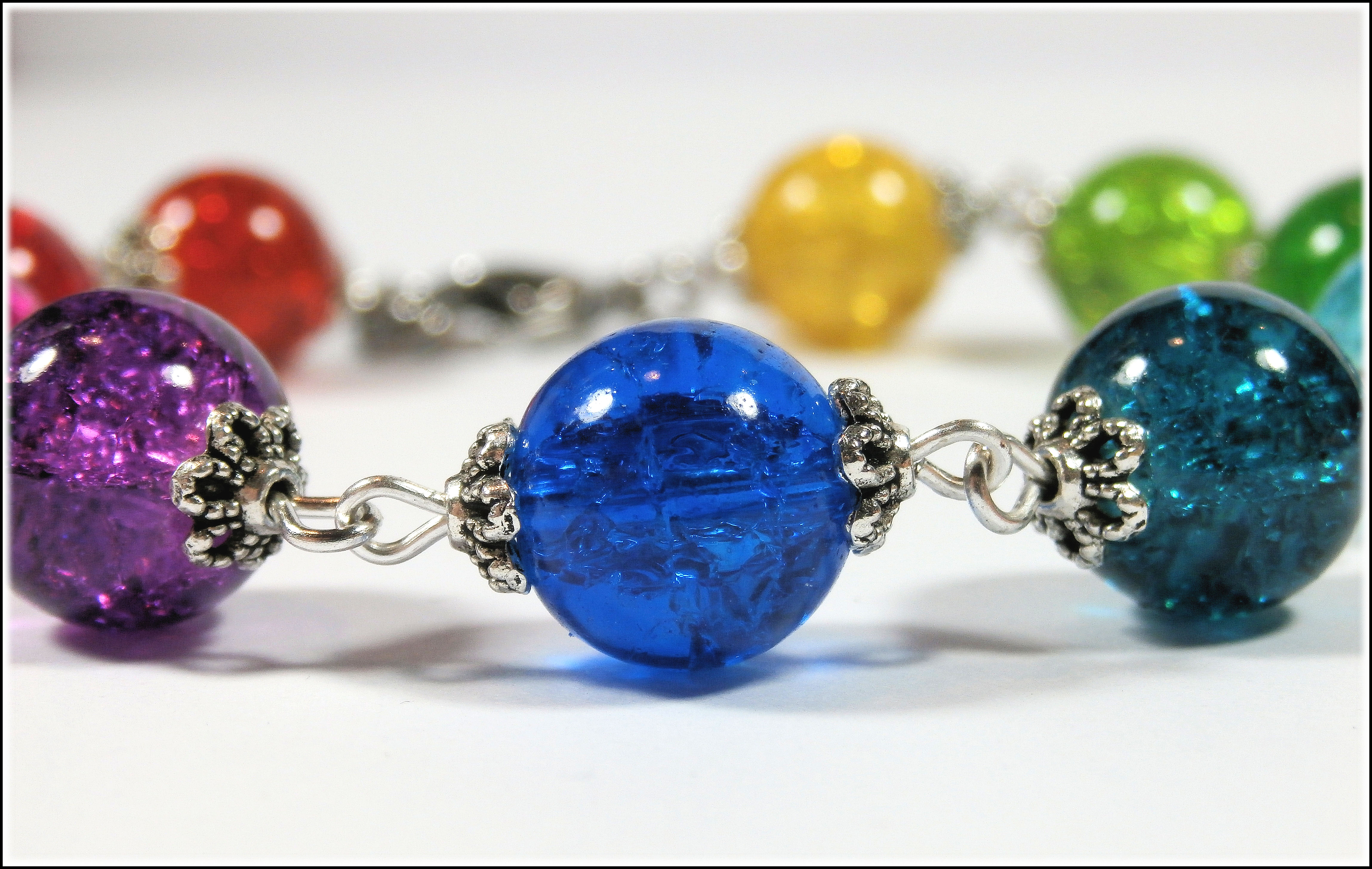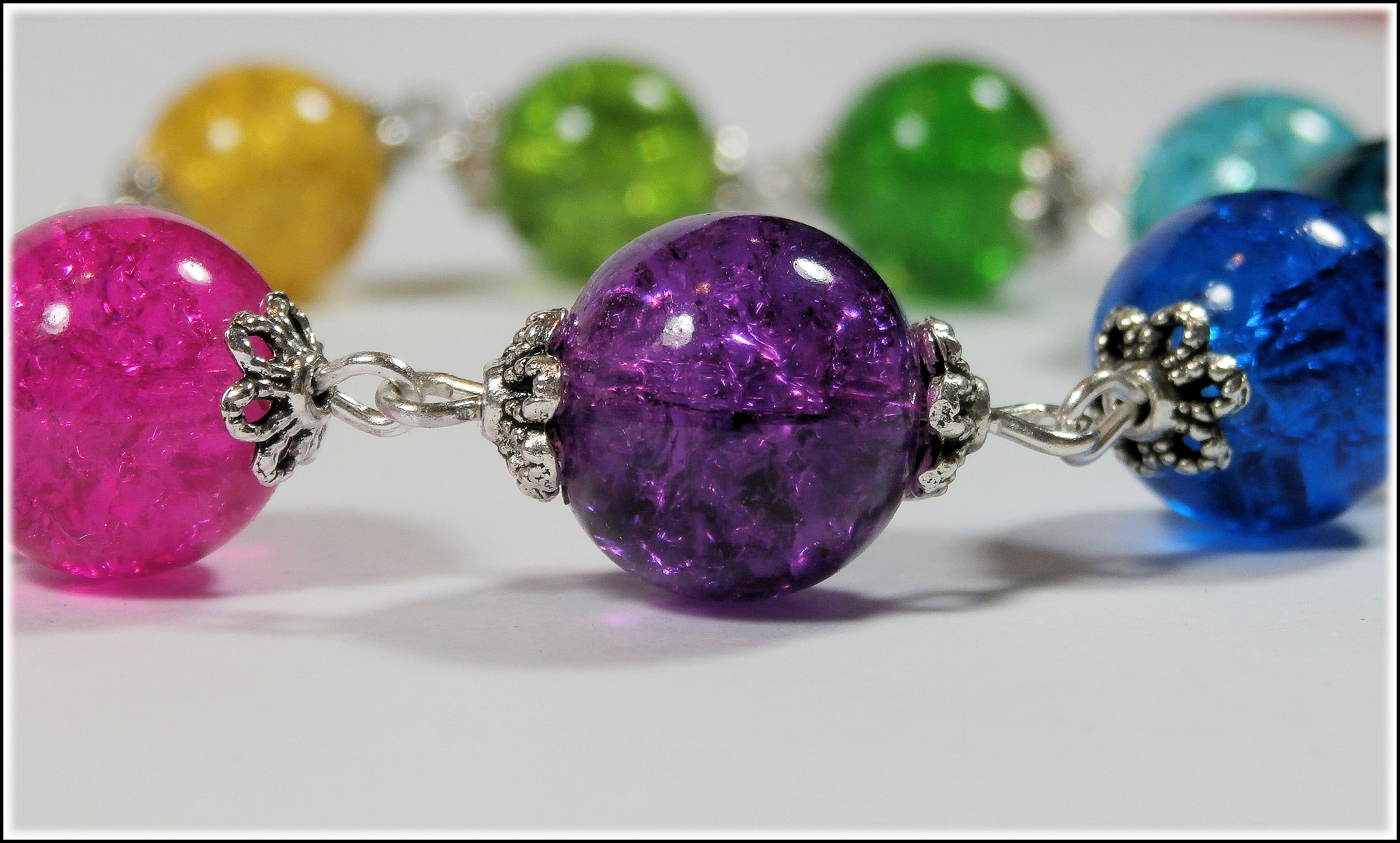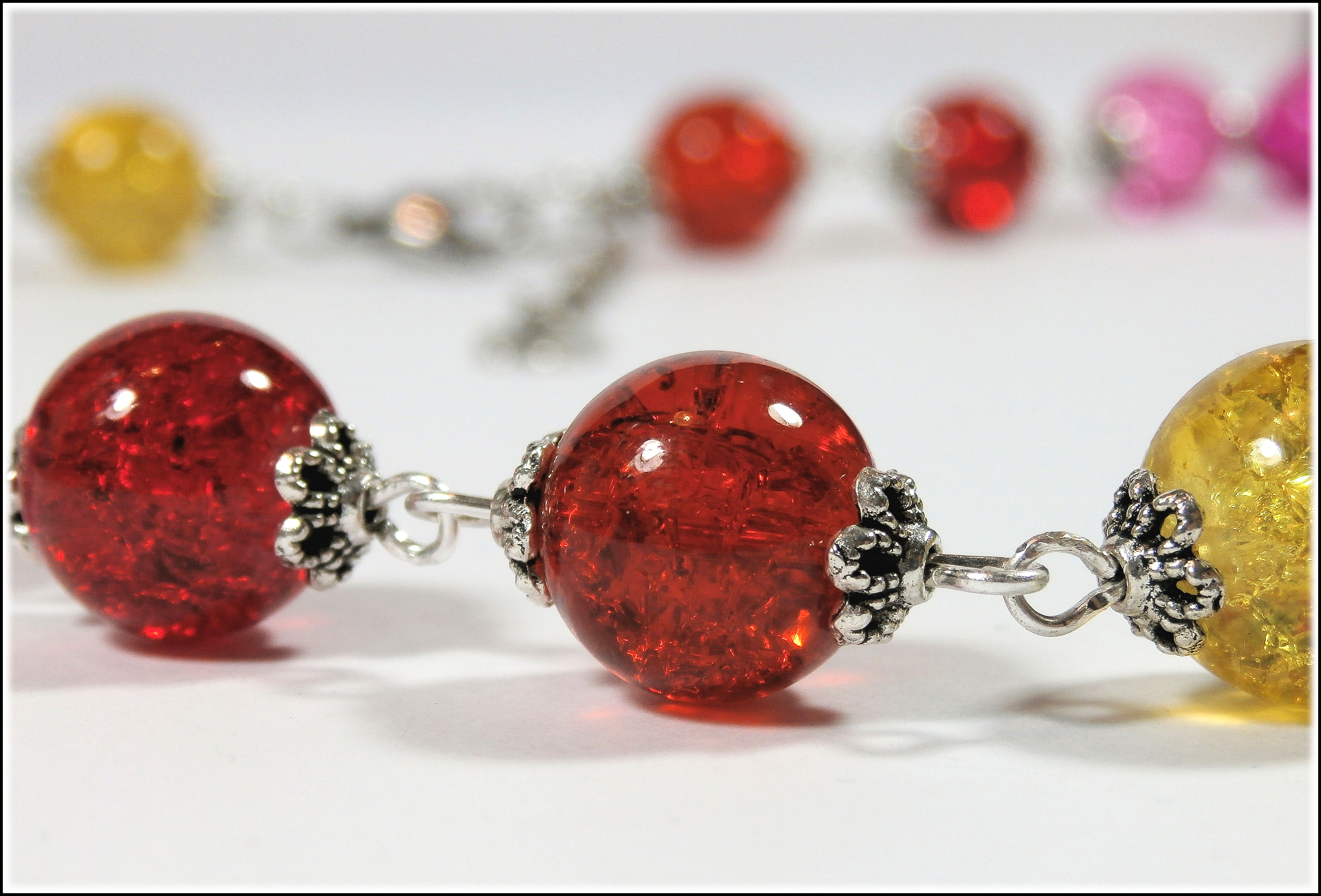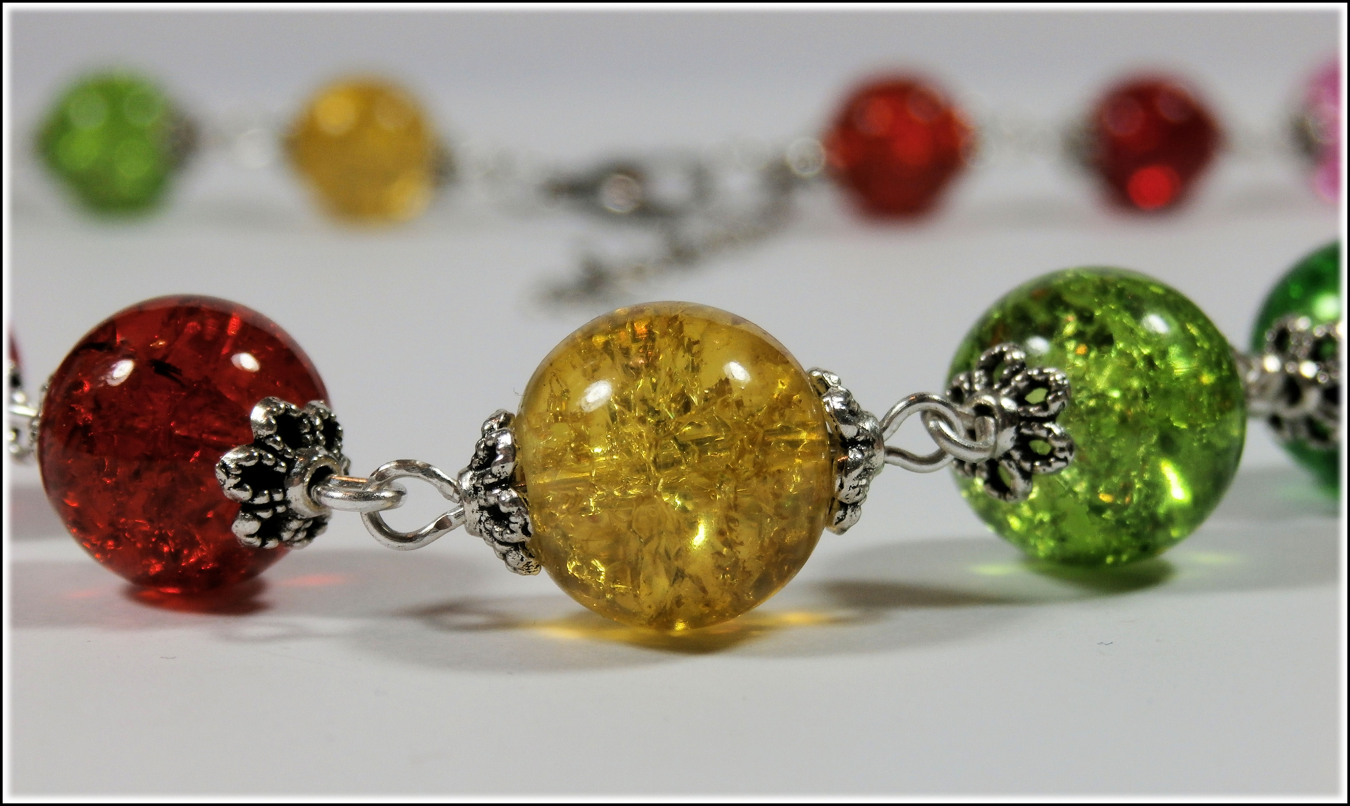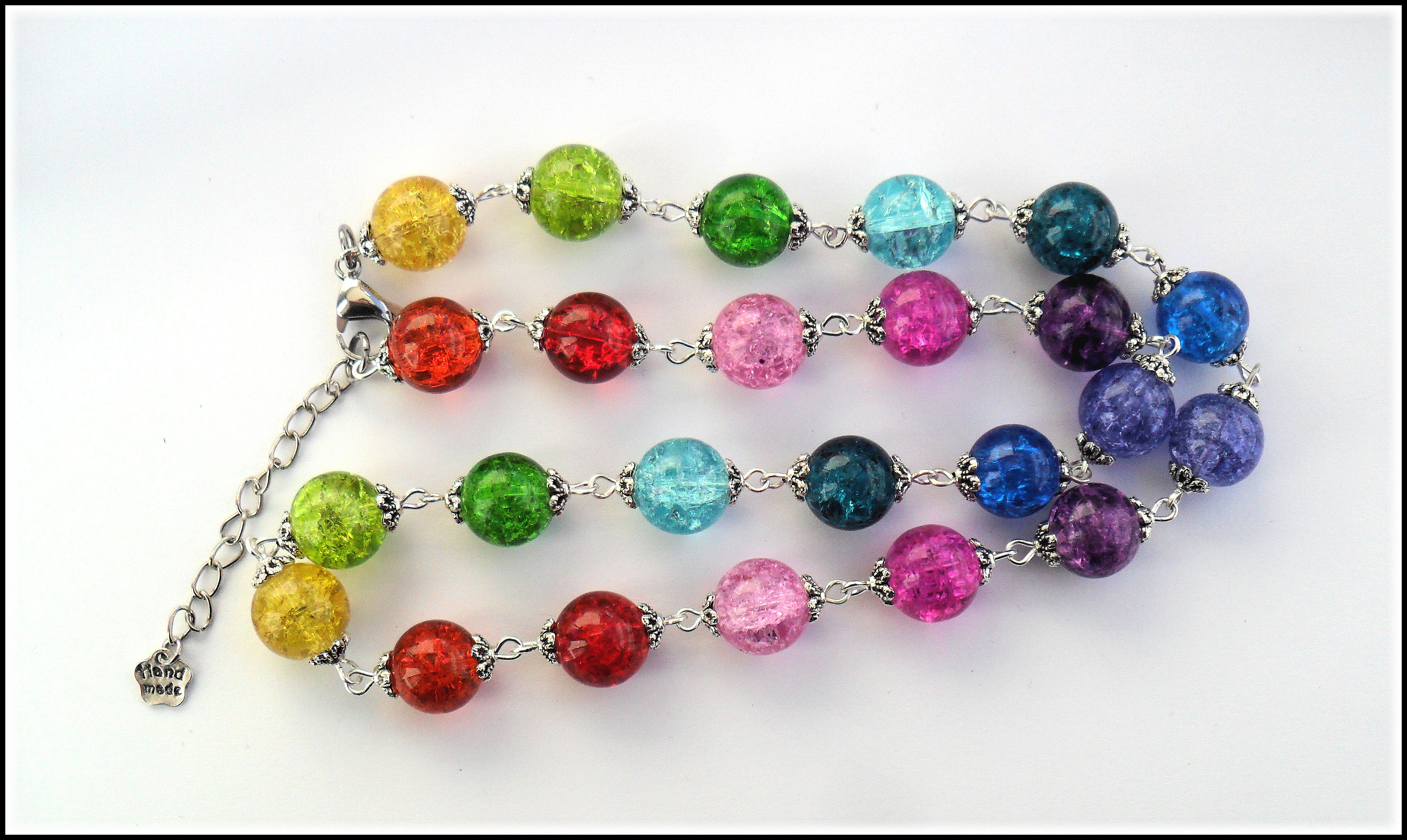 Material: Crackle-Glasperlen (12 mm), Metalllegierung (Verschluss, Perlkappen & Zubehörteile), Edelstahl (Karabiner)