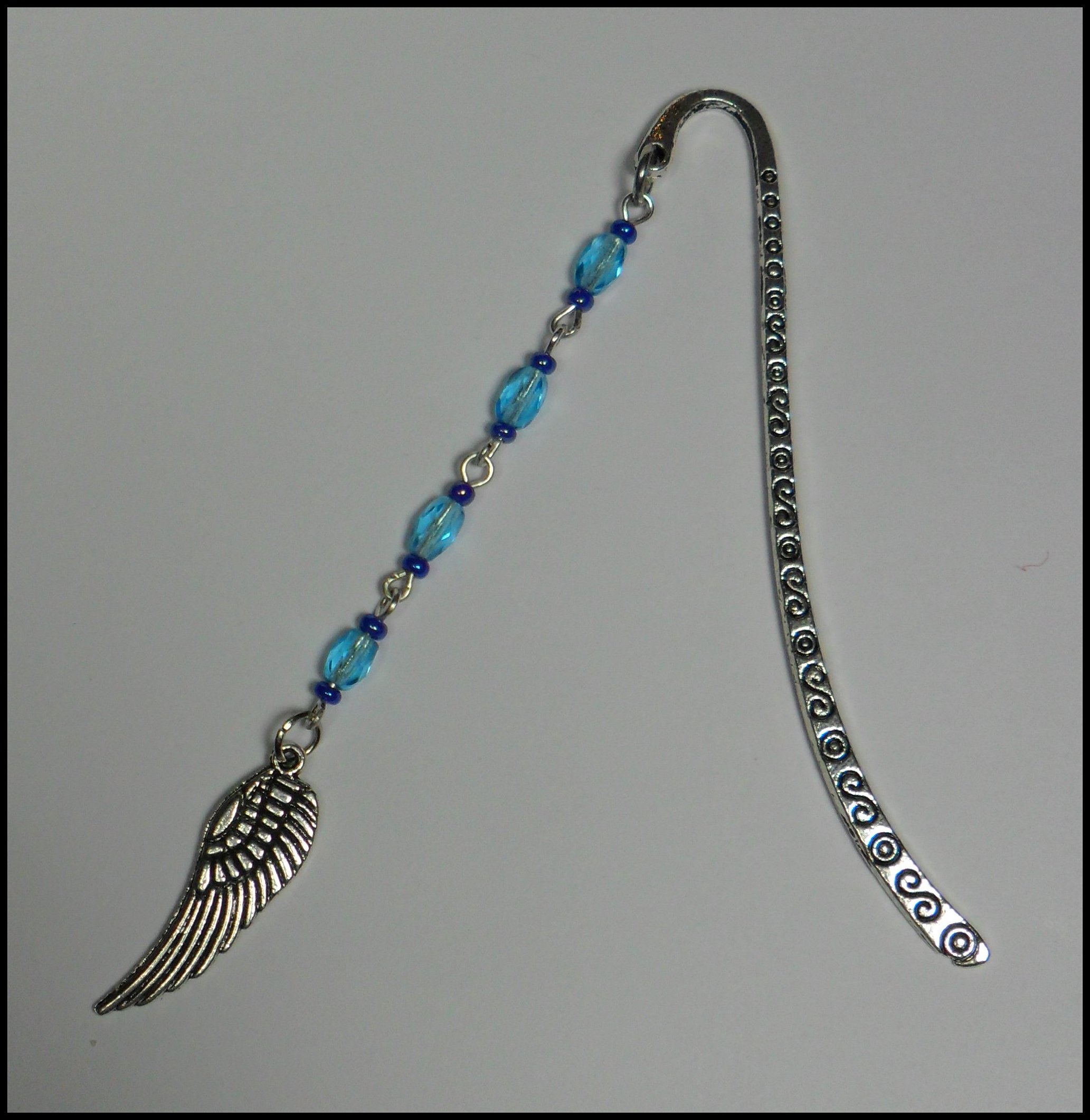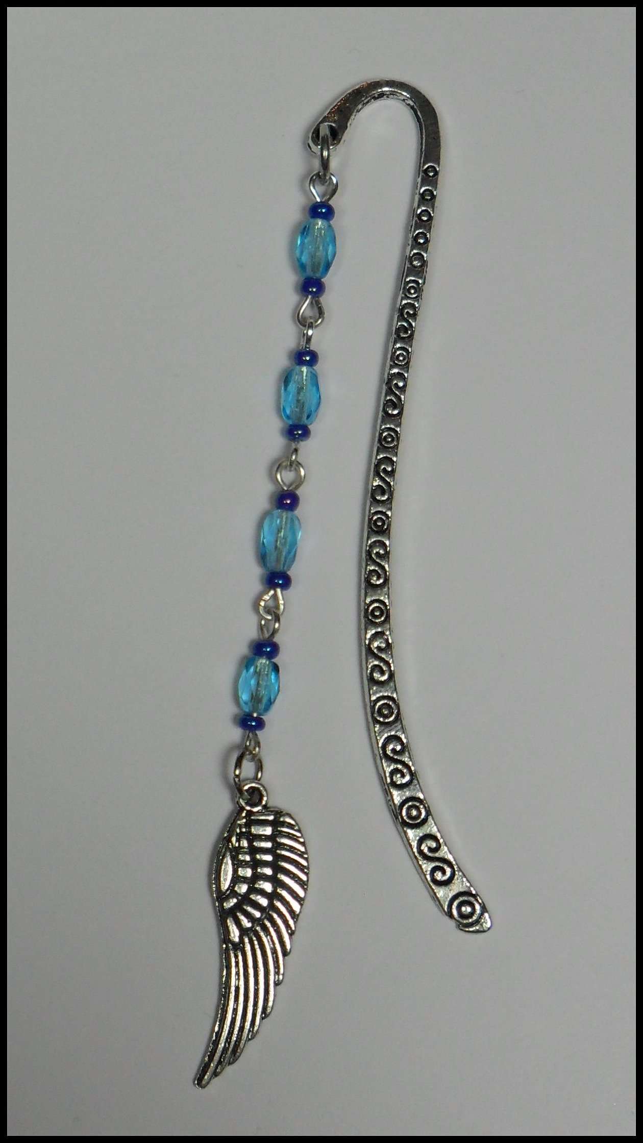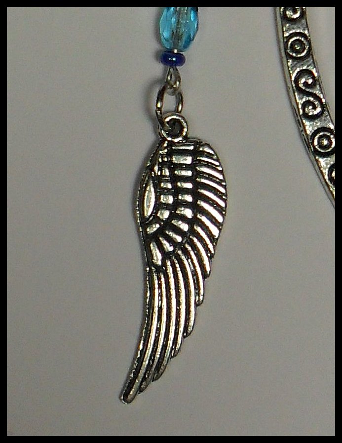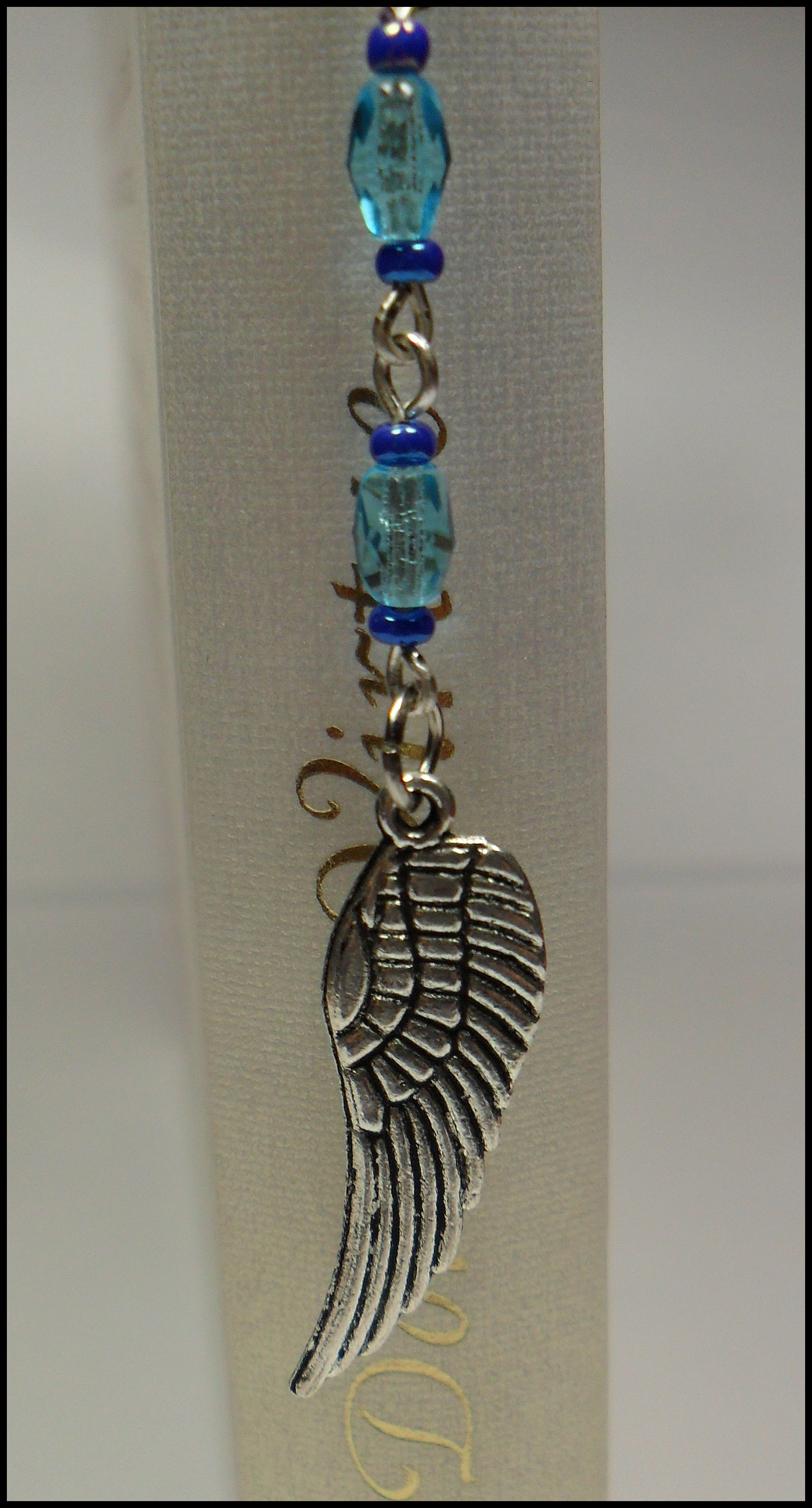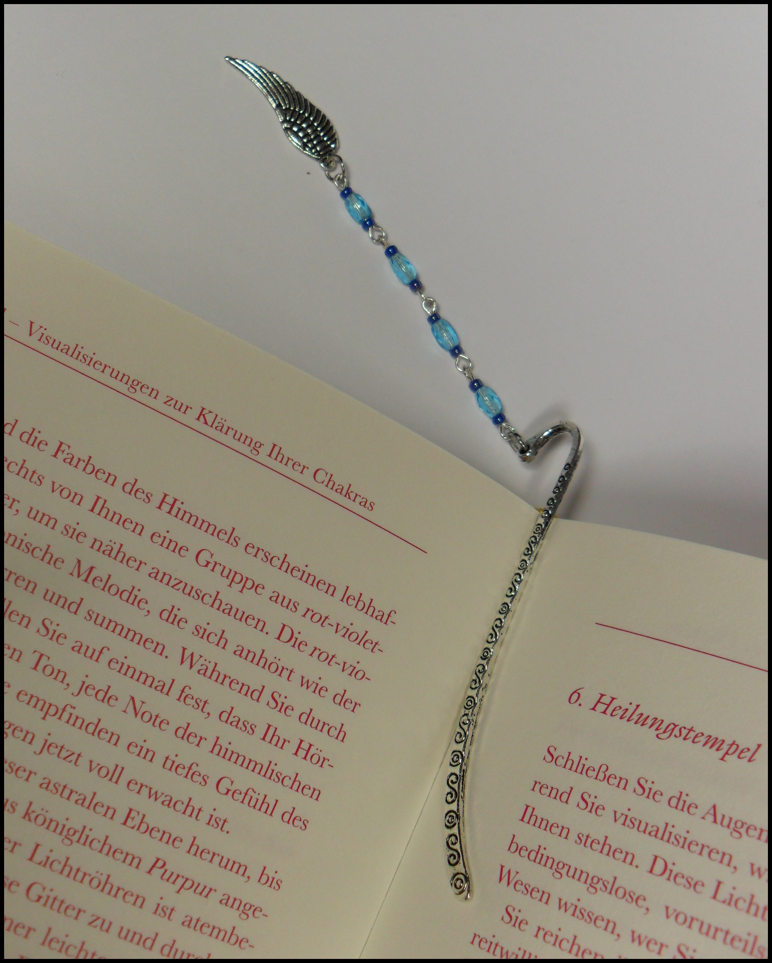 Dieses schöne Lesezeichen wird bestimmt durch blaue Glasperlen und einen Engelsflügel – ein kleiner Schutzengel, der Sie künftig immer bei der Lektüre Ihres Lieblingsbuches begleiten möchte.