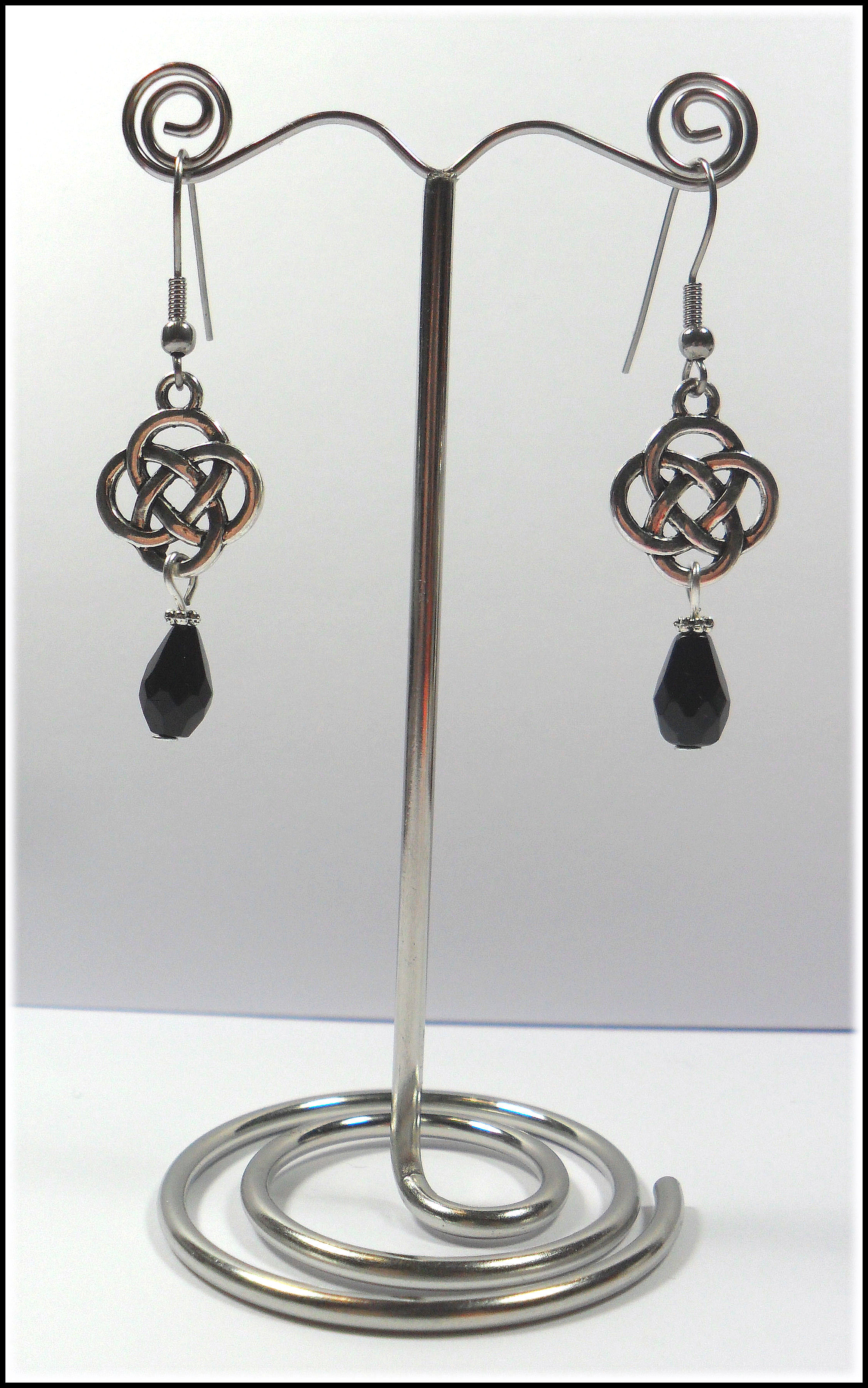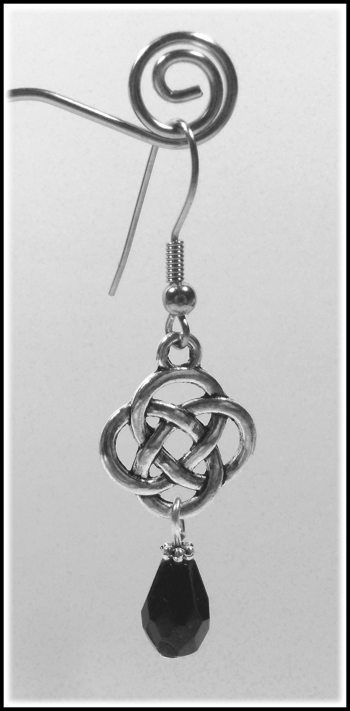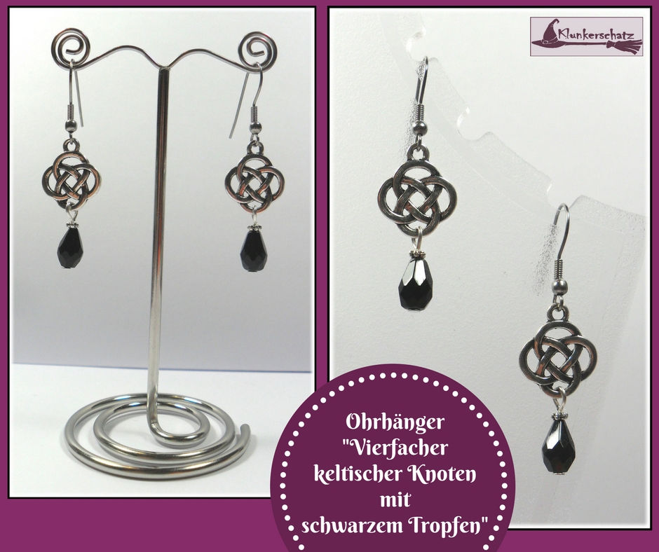 Der vierfache keltische Knoten steht unter anderem sowohl für die vier Jahreszeiten als auch für die vier Elemente – hier in Verbindung mit schwarzen Glastropfen.