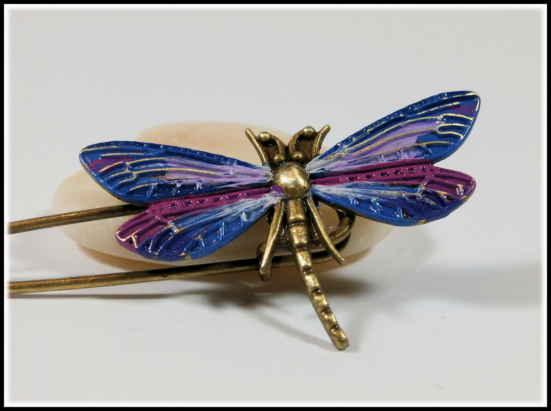 Liebevoll gestaltete Nadel mit einer handbemalten Libelle im Vintage-Stil.