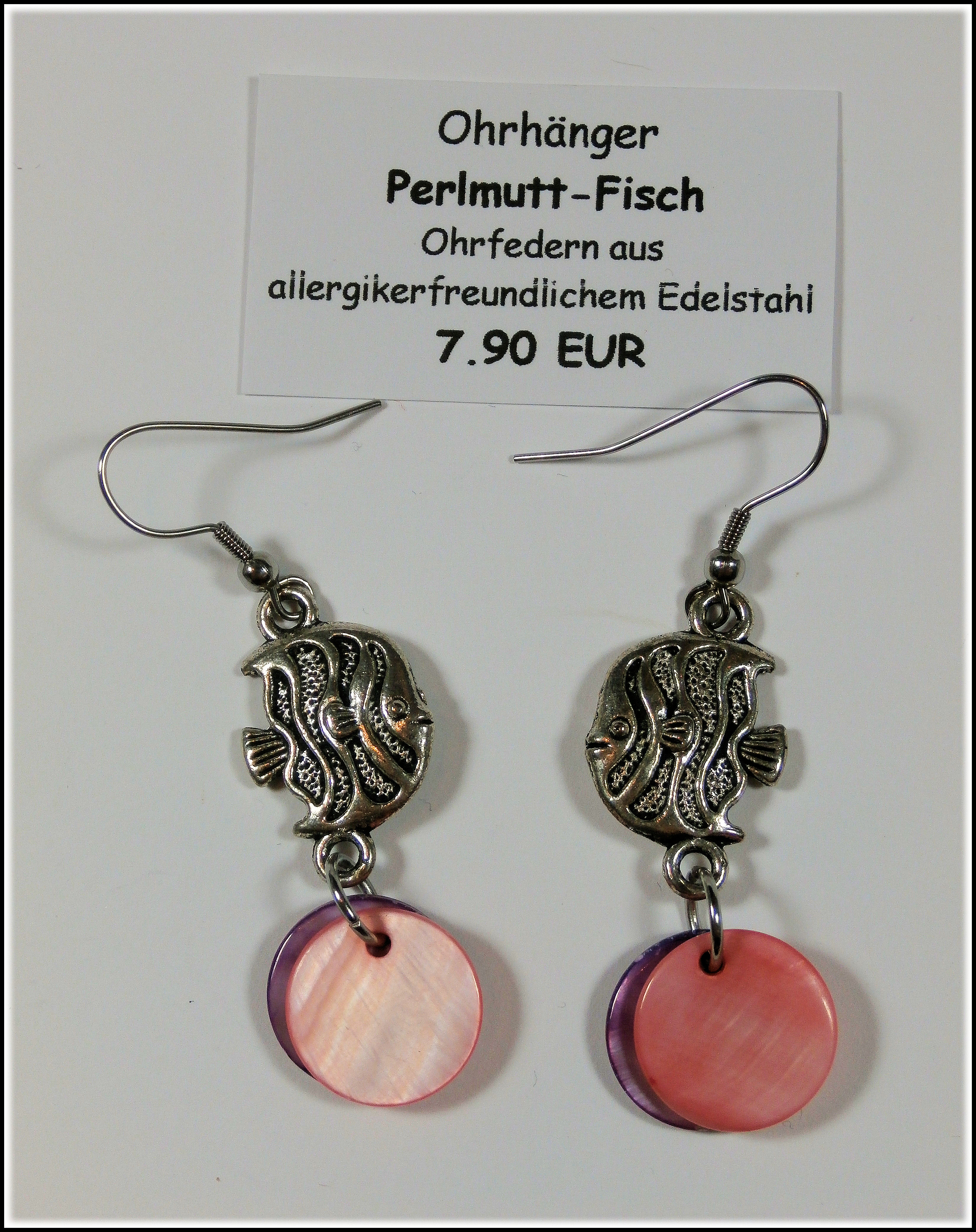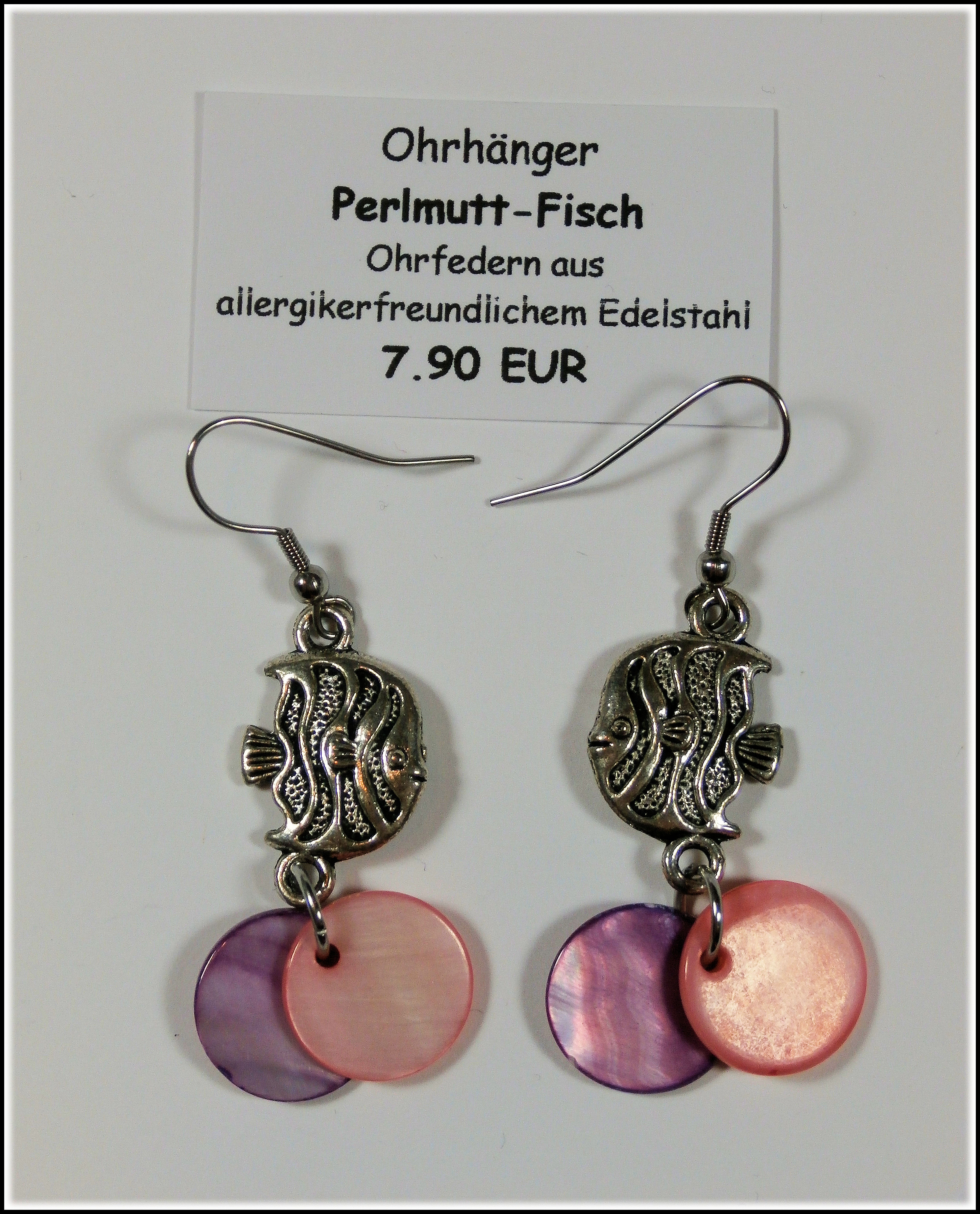 Set aus Bettelarmband und Ohrschmuck - Fische & Perlmutt