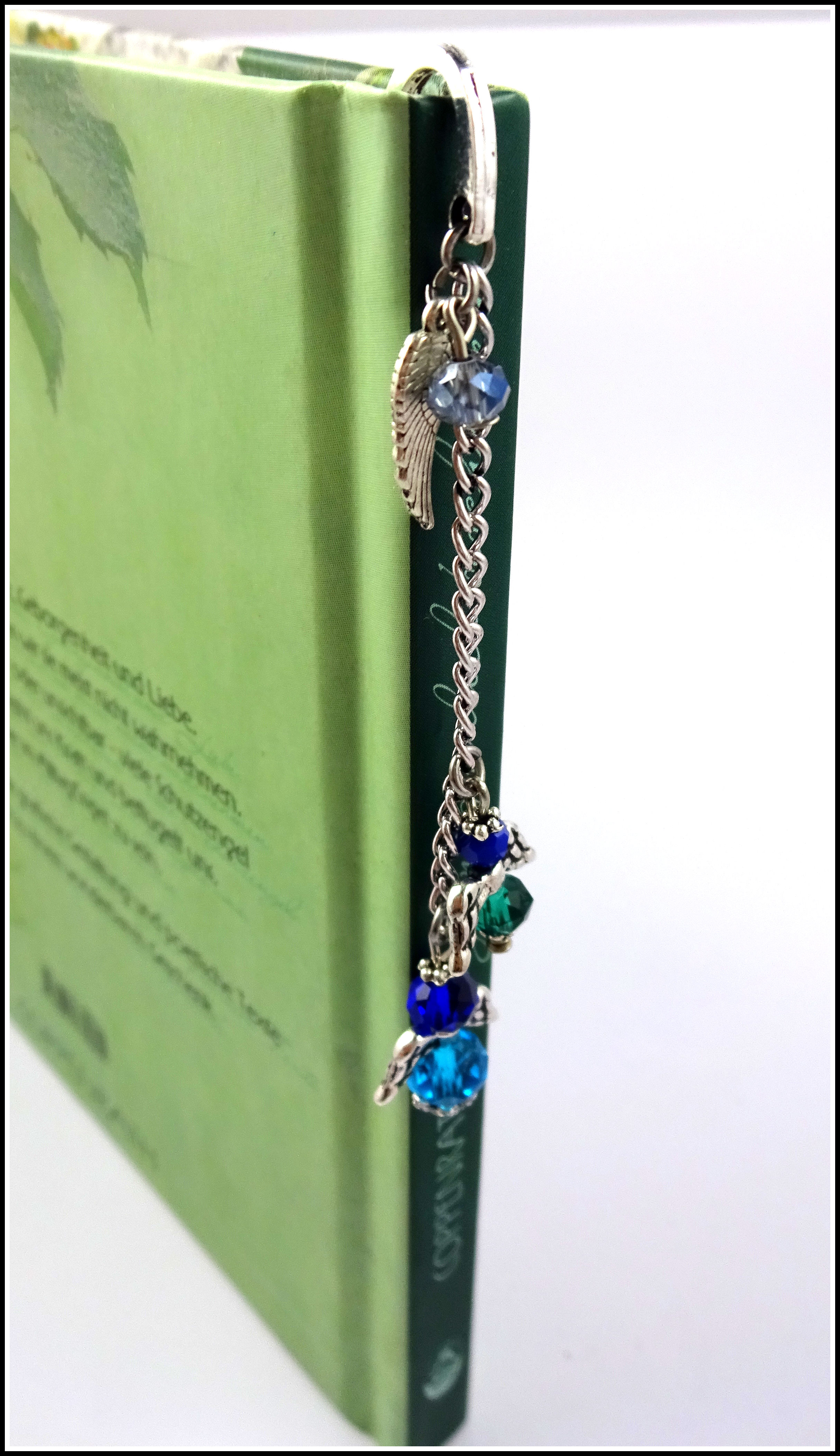 Dieses schöne Lesezeichen wird zum einen bestimmt durch seinen zart gravierten Körper und zum anderen natürlich durch zwei zauberhafte Schutzengel in verschiedenen Blautönen. Ferner finden sich ein kleiner Engelsflügel und eine kleine blaue Perle.