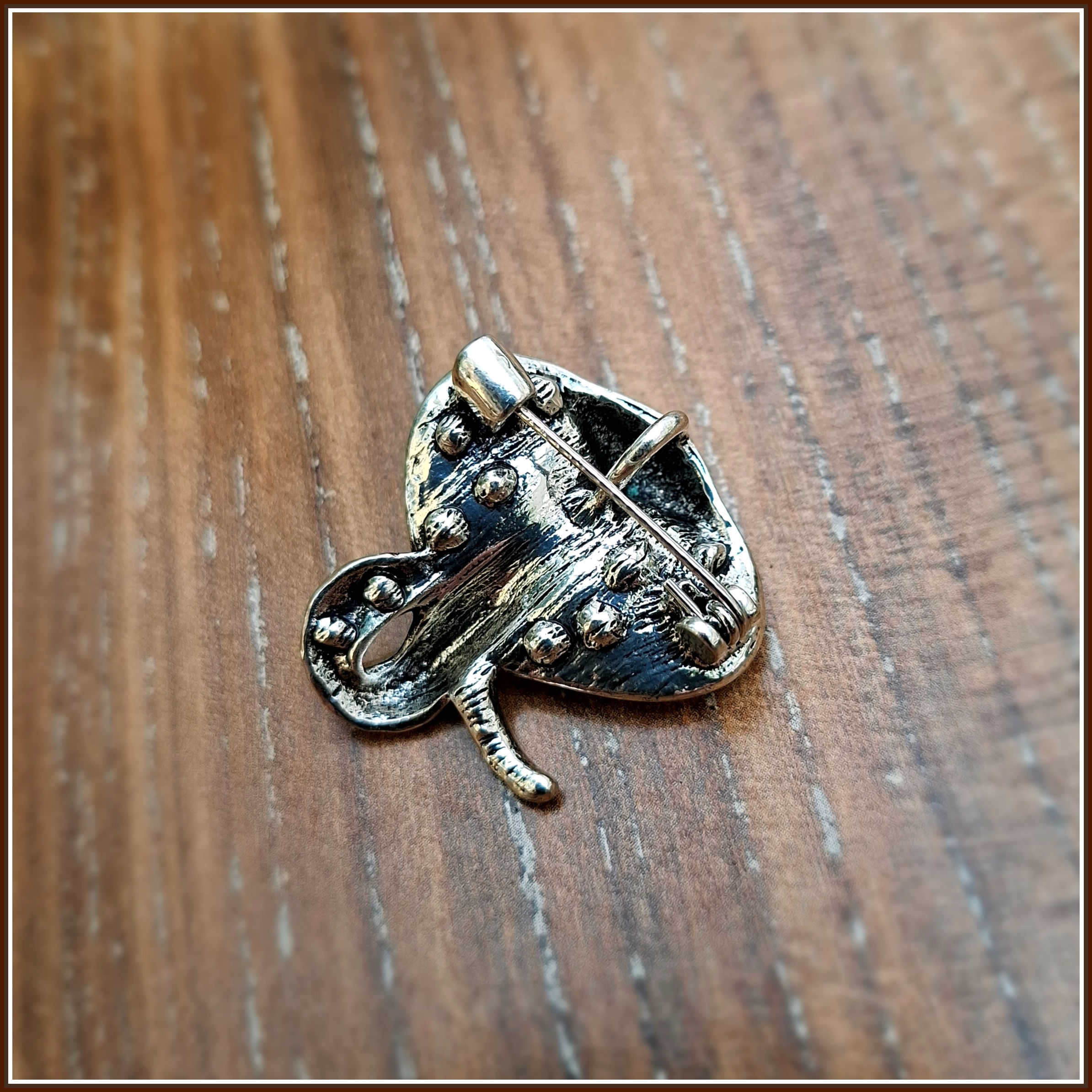 Diese Brosche hat auch eine Öse, mit der man sie als Kettenanhänger tragen kann. Sollten Sie sich eine Ketten zu diesem Schmuckstück wünschen, sprechen Sie uns bitte an.