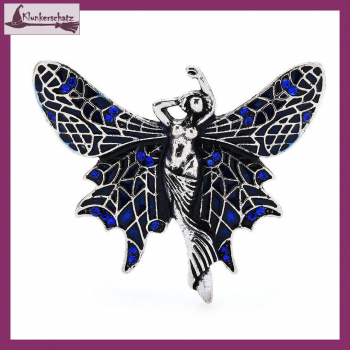Diese elegante Elfe mit ihren traumhaft schönen Schmetterlingsflügeln ist ganz zauberhaft gearbeitet mit ihren zarten blauen Emaillearbeiten.