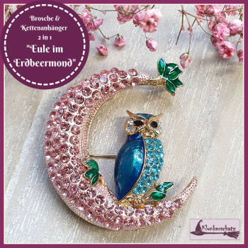 Diese Brosche, die sich dank einer integrierten Öse auch als Kettenanhänger tragen lässt, stammt leider nicht aus unserer eigenen Werkstatt. Da sie uns aber gar so gut gefällt, „mussten“ wir sie natürlich in unser Sortiment aufnehmen. Die Öse befindet sich oben am Mond. Allerdings wird man bei der Verwendung als Kettenanhänger immer die Nadel etwas sehen, wie auf den Fotos gut zu erkennen ist.