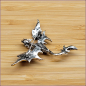 Diese Brosche, die sich dank einer integrierten Öse auch als Kettenanhänger tragen lässt, stammt leider nicht aus unserer eigenen Werkstatt. Da sie uns aber gar so gut gefällt, „mussten“ wir sie natürlich in unser Sortiment aufnehmen. Die Öse befindet sich am Hals, so dass der Drache dann steil aufwärts fliegt – Kopf nach oben, Schwanz nach unten.