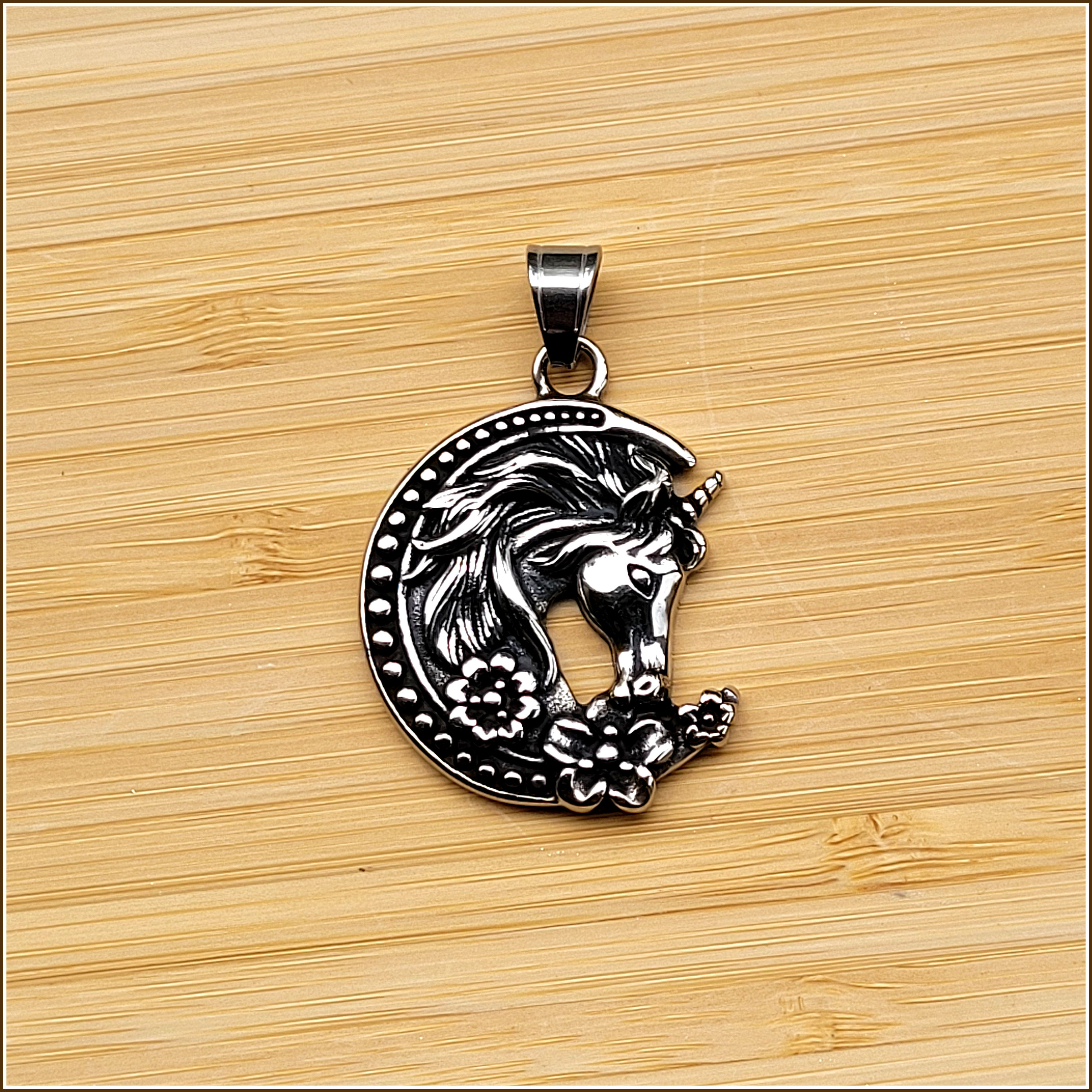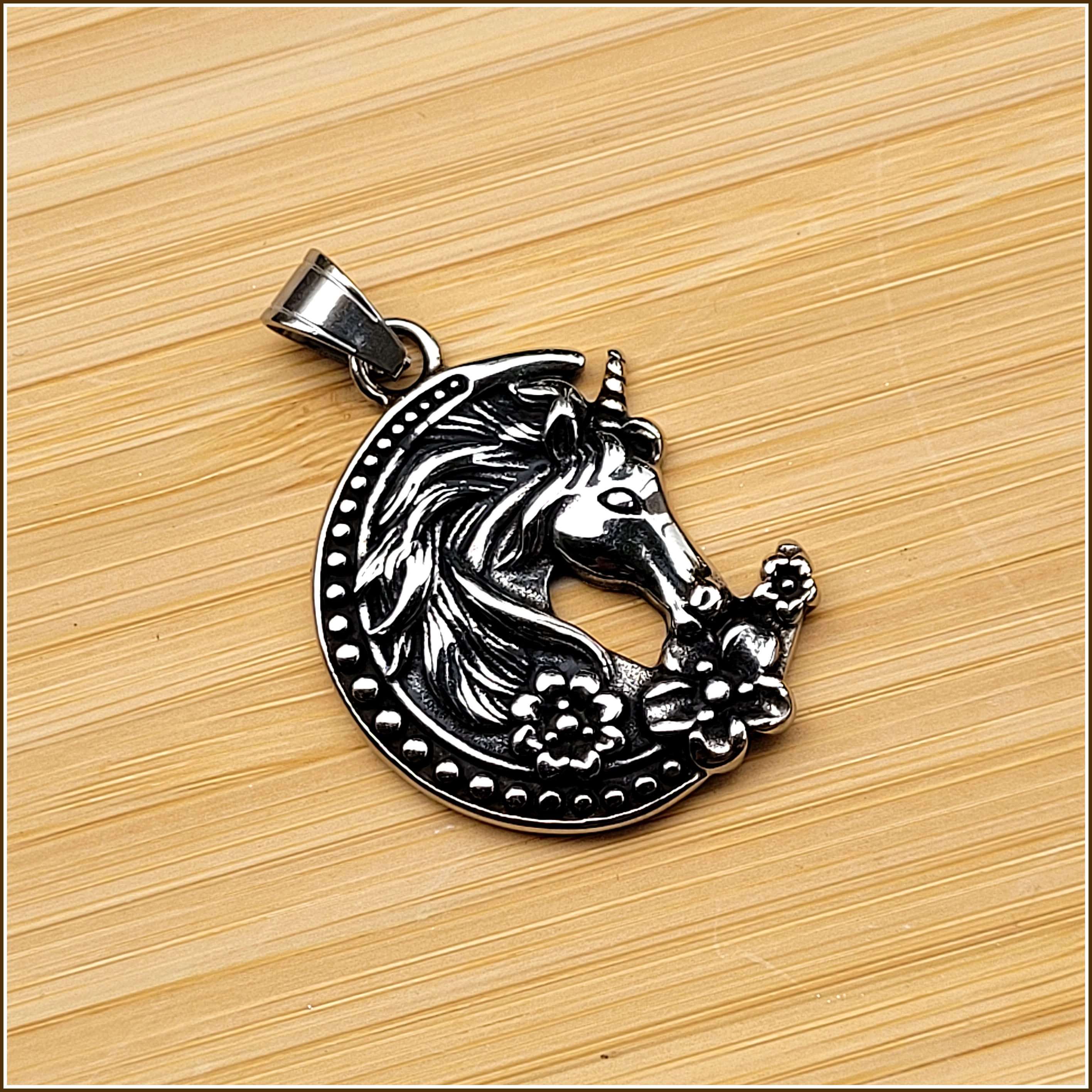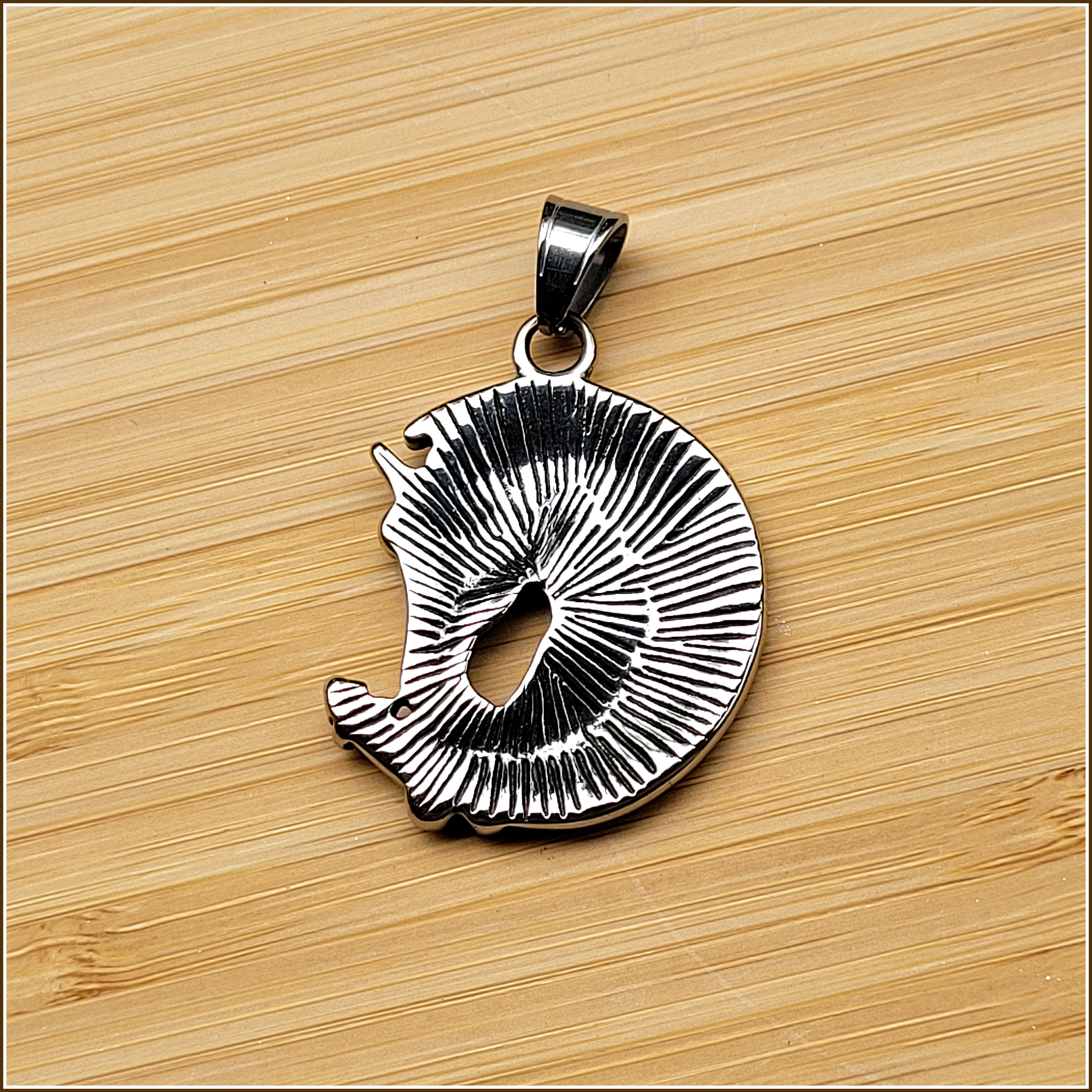 Edelstahl, ein besonders beliebtes, edles Material mit vielen Vorzügen. So wird Edelstahl auch von Allergikern in der Regel sehr gut vertragen. Er ist absolut farb- und formstabil. In der Farbe ähnelt Edelstahl Antiksilber. Dieser Anhänger ist teilweise geschwärzt.