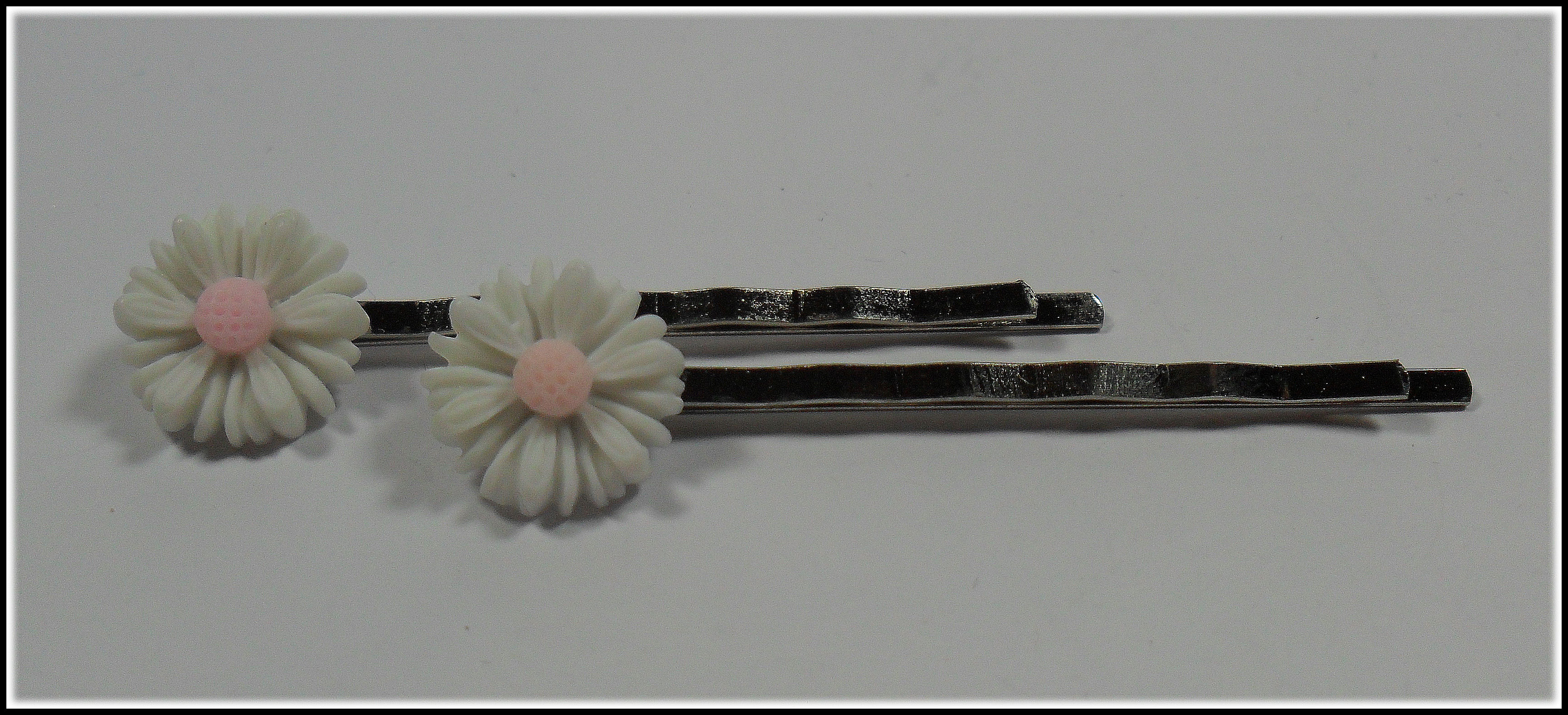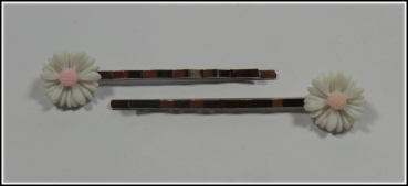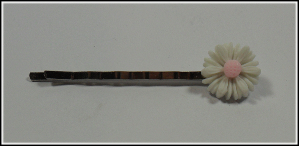 Eine stabile Haarklemme in Silber, geschmückt mit einem besonders hübschen Gänseblümchen.