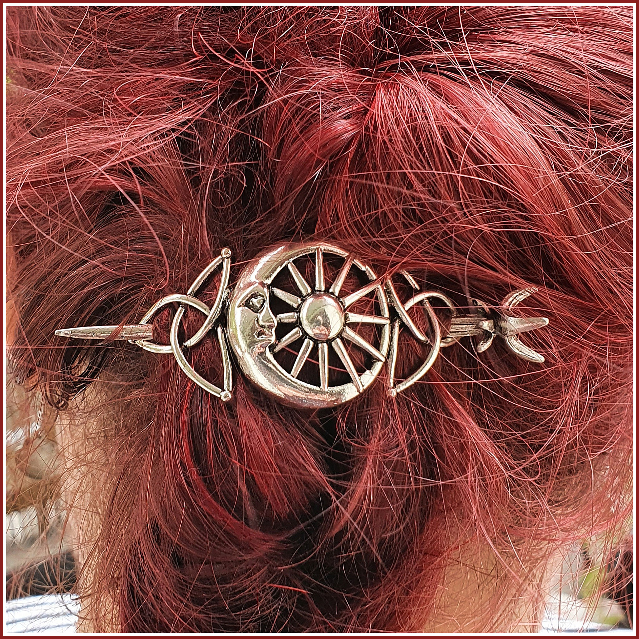 Die Mondsichel, die Sonne und auf jeder Seite eine Triqueta – in dieses Design haben wir uns vom Fleck weg verliebt. So hell und licht und voller Magie - so wunderschön!