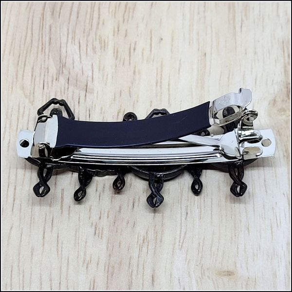 Diese Haarspange hat eine Größe von 4 x 8,3 cm. Einen starken Zopf oder Pferdeschwanz kann sie vielleicht nicht aufnehmen (auch wenn sie etwas größer ist als viele unserer einfarbigen Spangen), aber sie hält bequem das Deckhaar oder auch mehr bei feinerem Haar.
