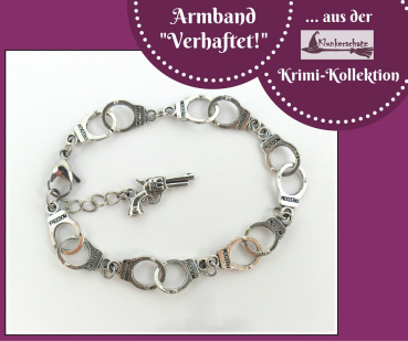 Dieses Armband ist ein Teil unserer „Krimi Kollektion“, die in Zusammenarbeit mit dem Berliner Kriminaltheater entstanden ist und das es bislang nur direkt und exklusiv im Foyershop des Berliner Kriminaltheaters zu kaufen gab. Nun zieht es auch in den Klunkerschatz-Onlineshop.