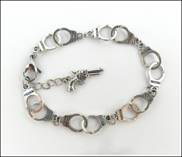 Diese an einander gereihten Handschellen sind die idealen Schmuckstücke für Fans von Krimis, ganz gleich ob wir hier von Agatha Christie und Edgar Wallace oder von CSI, CIS & Co. sprechen.