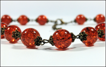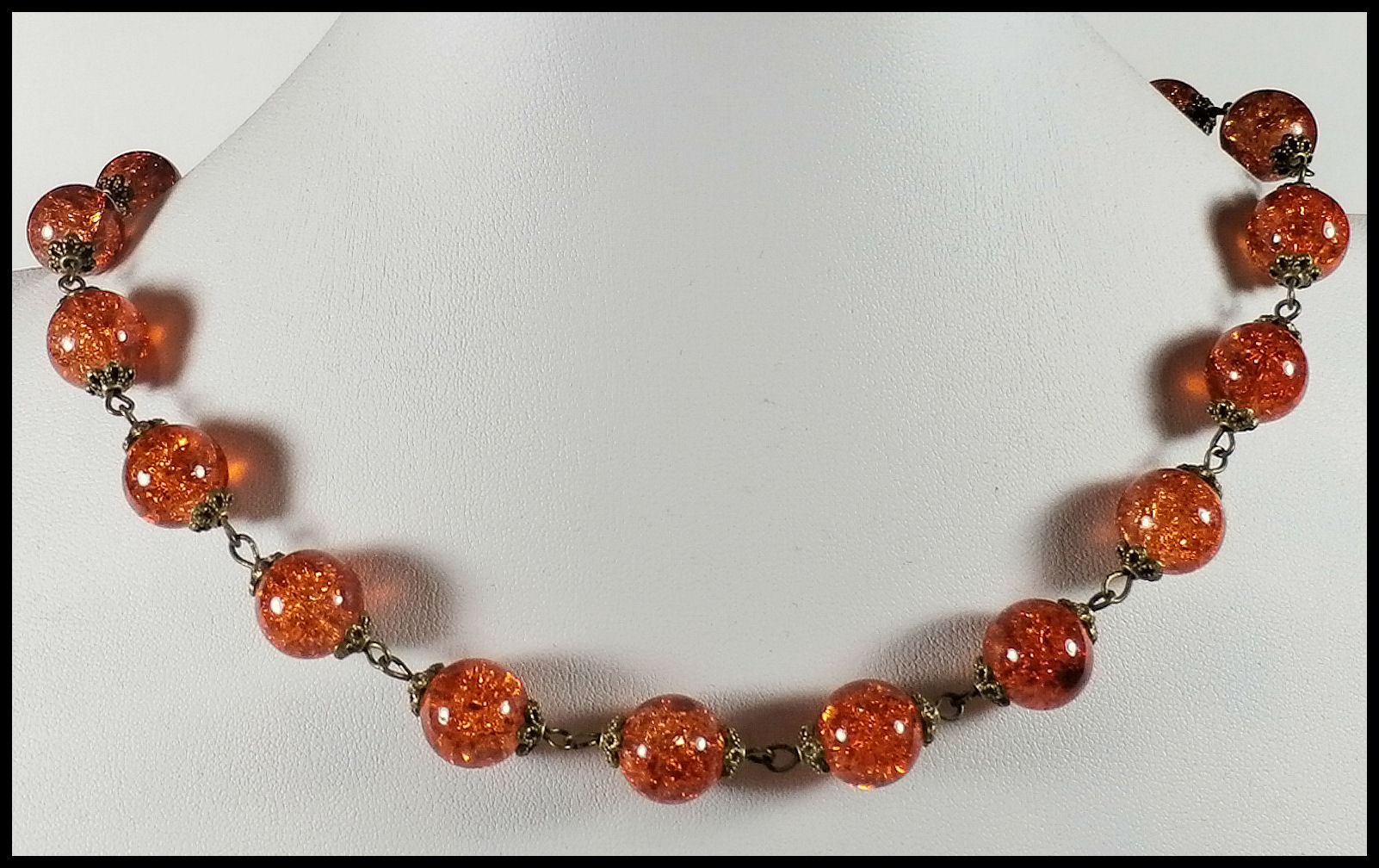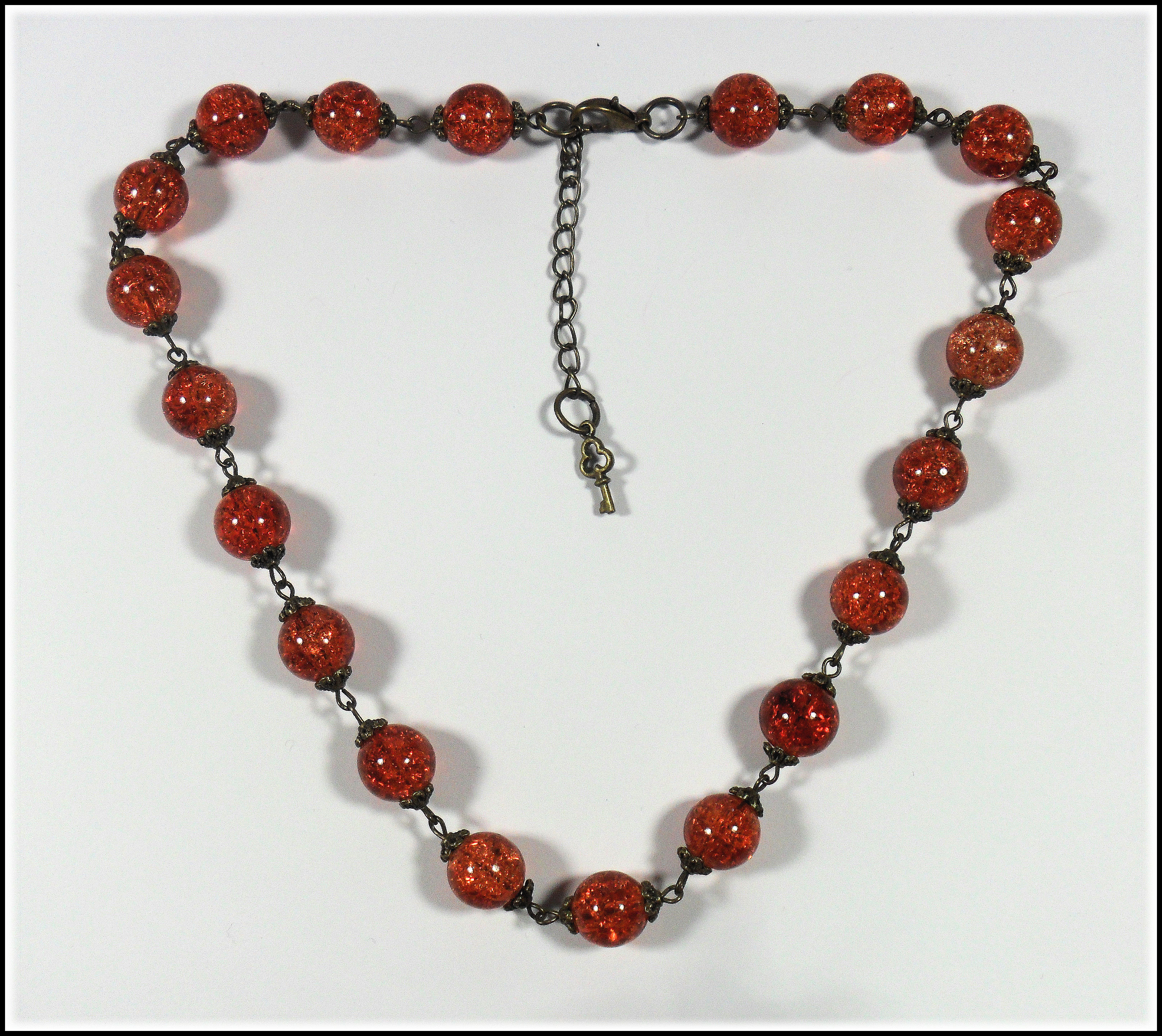 Einmalig schöne orange Crackle-Perlen, gefasst in bronzierte Perlkappen – ein wahrer Klunkerschatz ist dieses herrliche Collier!