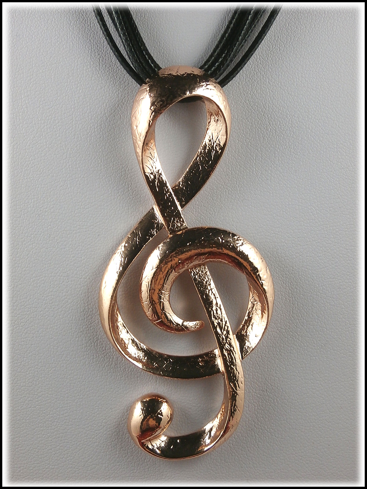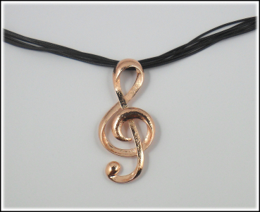 Sie lieben Musik? Sie halten (frei nach Nietzsche) ein Leben ohne Musik für einen Irrtum? Dann ist dieses Schmuckstück genau das richtige für Sie! Dieser elegant geschwungene Notenschlüssel in der aktuellen Farbe Roségold sitzt ohne sichtbare Öse direkt auf einer sechsreihigen Kette aus schlanker, schwarzer, gewachster Baumwollkordel. Einer der schönsten Wege, die eigene Liebe zur Musik zu zeigen.