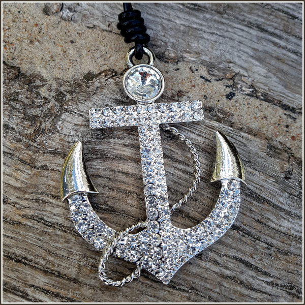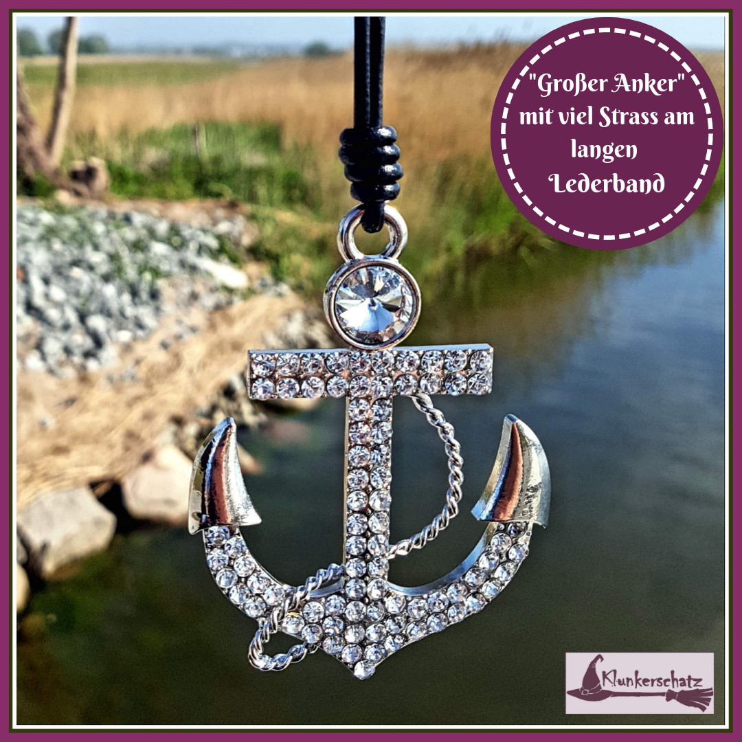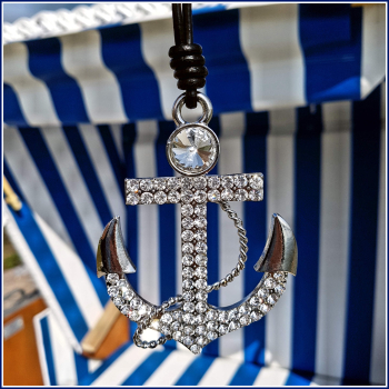 Dieser Anker hier ist reich mit Strasssteinen besetzt und sorgt damit auf jeden Fall für Aufmerksamkeit! Eine echte Statementkette!