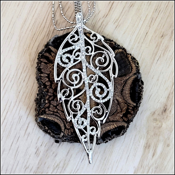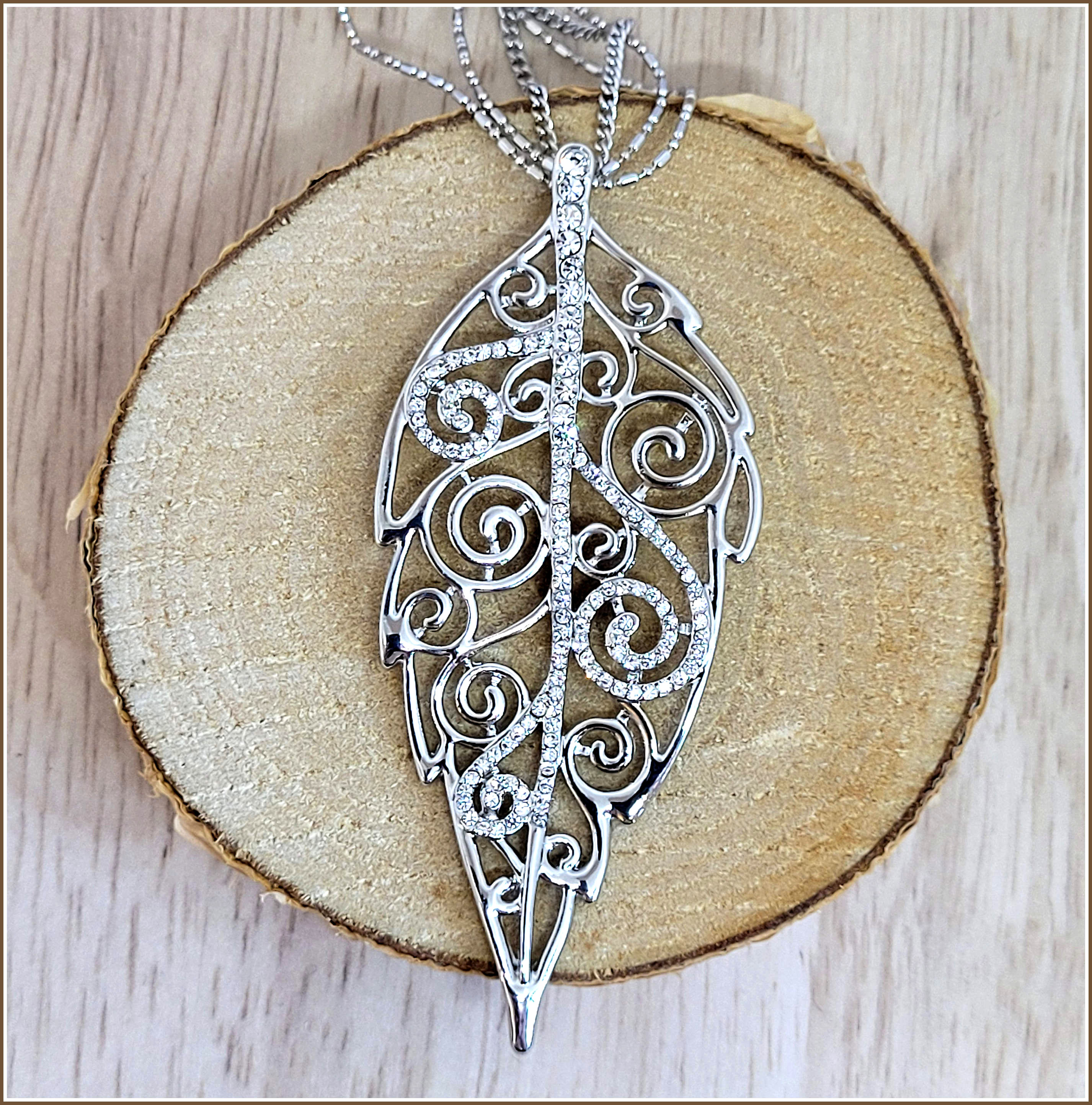 Der Anhänger hat eine stattliche Größe von 8,7 x 3,8 cm und ist mit vielen Strasssteinen besetzt.
