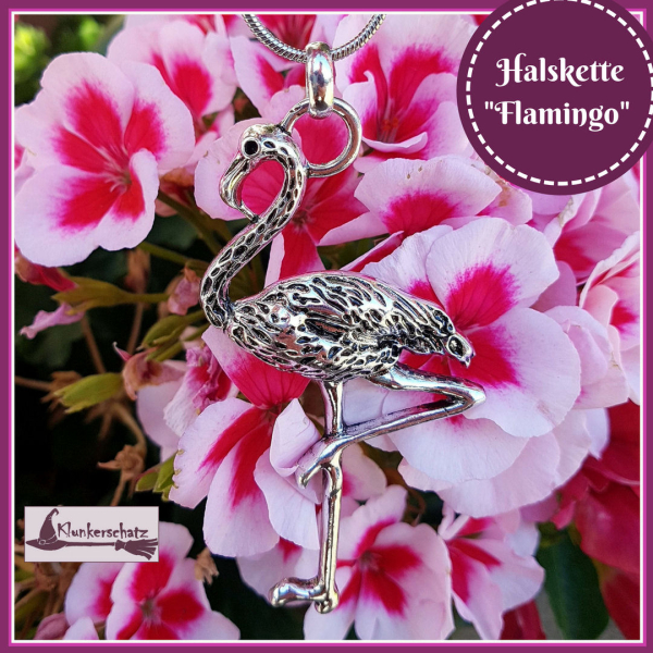Geliefert wird der „Flamingo“ aber mit dieser Schlangenkette, die eine Gesamtlänge von ca. 90 cm hat und durch einen kleinen Karabiner verschlossen wird.