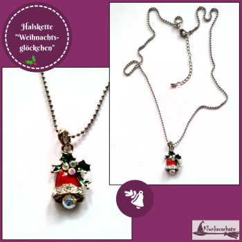 Diese funkelnde und glitzernde, teilweise emaillierte Weihnachtsglocke an ihrer zierlichen Kugelkette ist ein ganz besonders elegantes, zartes Schmuckstück, durch das die Trägerin ihre besondere Liebe zur schönsten Zeit des Jahres zeigt.