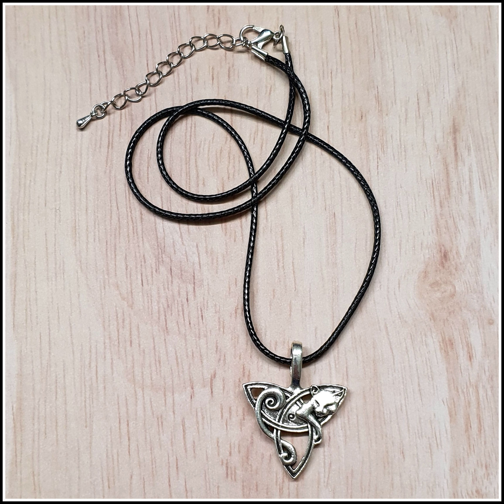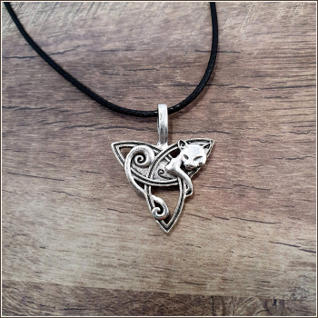 Bei diesem wunderschön gestalteten Kettenanhänger verbinden sich zwei unserer Lieblingssymbole – eine Katze und eine Triqueta.