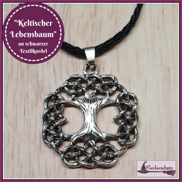 Dieser wunderschön gestaltete Kettenanhänger zeigt einen zauberhaft-magischen keltischen Lebensbaum mit starken Ästen und Wurzeln („wie unten so oben“), die sich in kräftigen keltischen Knoten vereinigen.