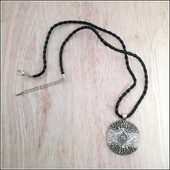 Dieser einzigartige Kettenanhänger hängt an einem geflochtenen Kunstlederband in geheimnisvollem Schwarz. Sollte Ihnen ein anderes Band aus unserem Shop oder eine Gliederkette besser gefallen, schreiben Sie uns einfach an. Wir können das dann gerne austauschen.