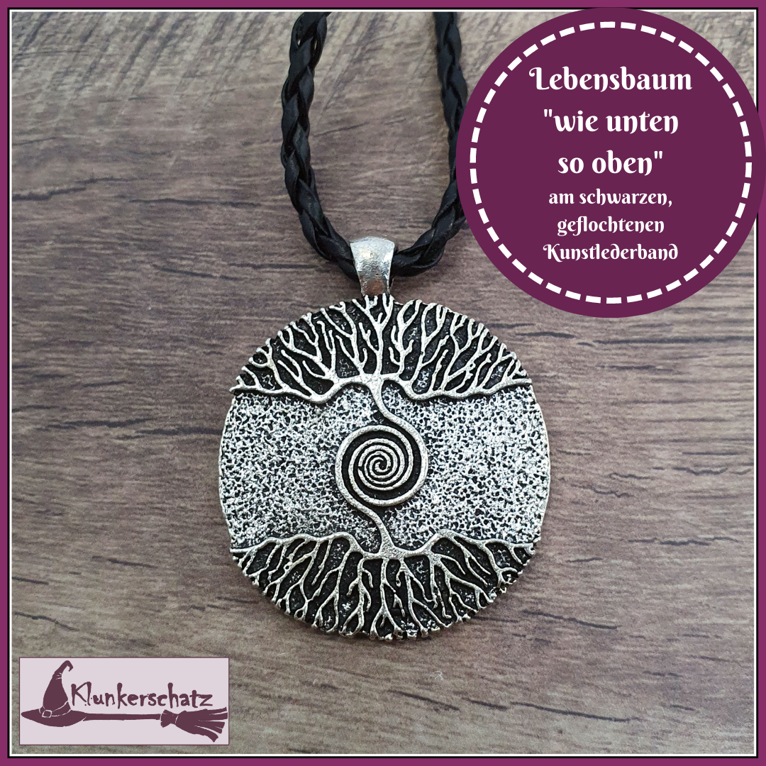 Der Lebensbaum steht für die Verbindung zwischen Unterwelt (Wurzeln), Erde (Stamm) und Himmel (Wipfel/Äste).