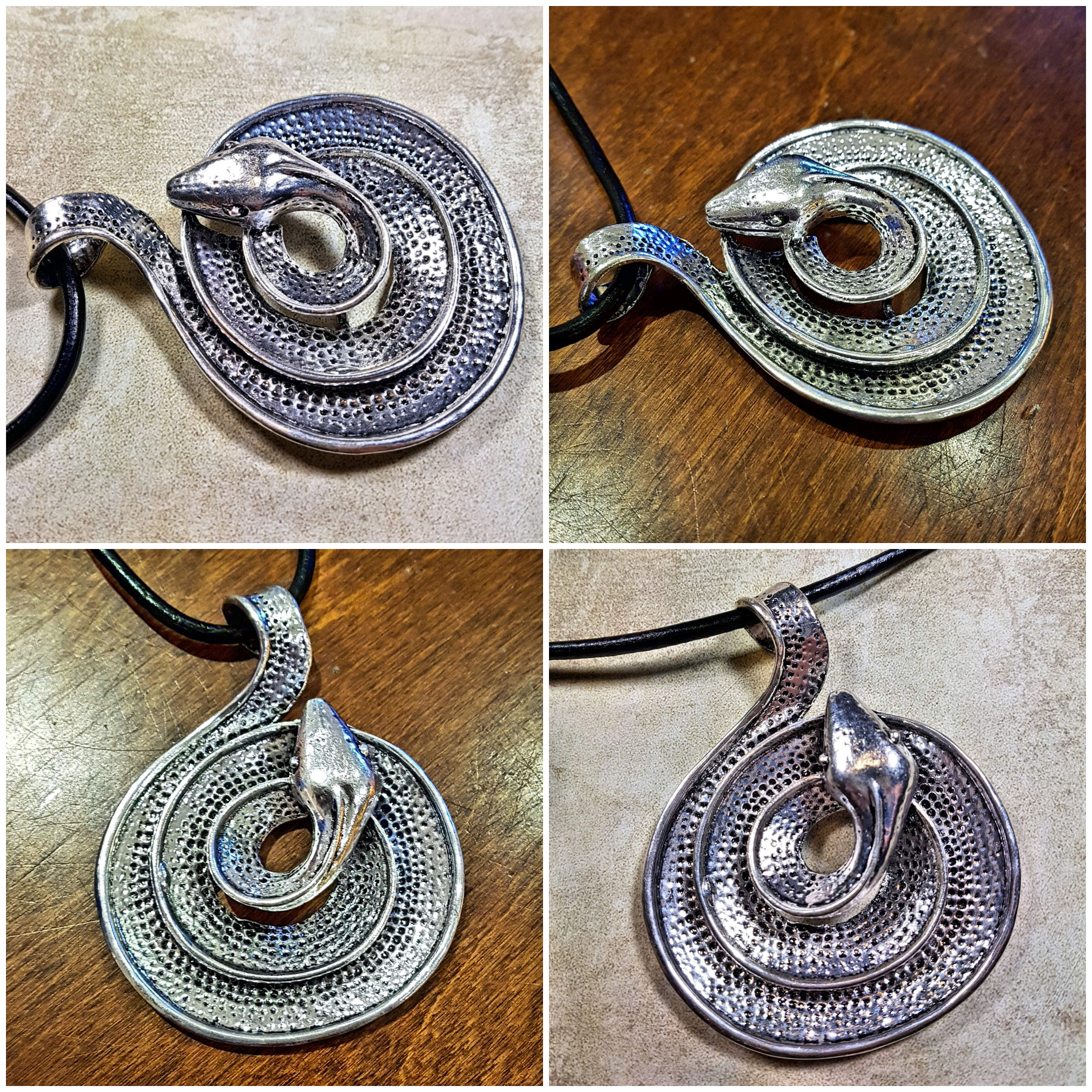 Diese schöne Kette mit ihrem Schlangenanhänger stammt leider nicht aus unserer eigenen Werkstatt, ist aber so wunderschön, dass wir sie in unser Sortiment aufnehmen „mussten“.