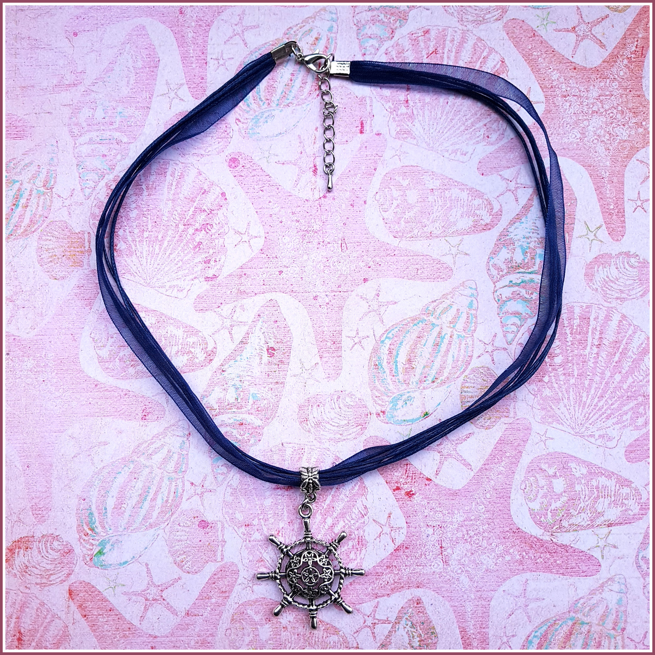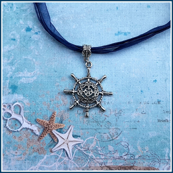 Unser Steuer hängt an einem fünfreihigen Band aus Organza und gewachster Baumwolle in typischem Marineblau. Sollte Ihnen ein anderes Band aus unserem Shop farblich besser gefallen, schreiben Sie uns einfach an. Wir können das dann gerne austauschen.