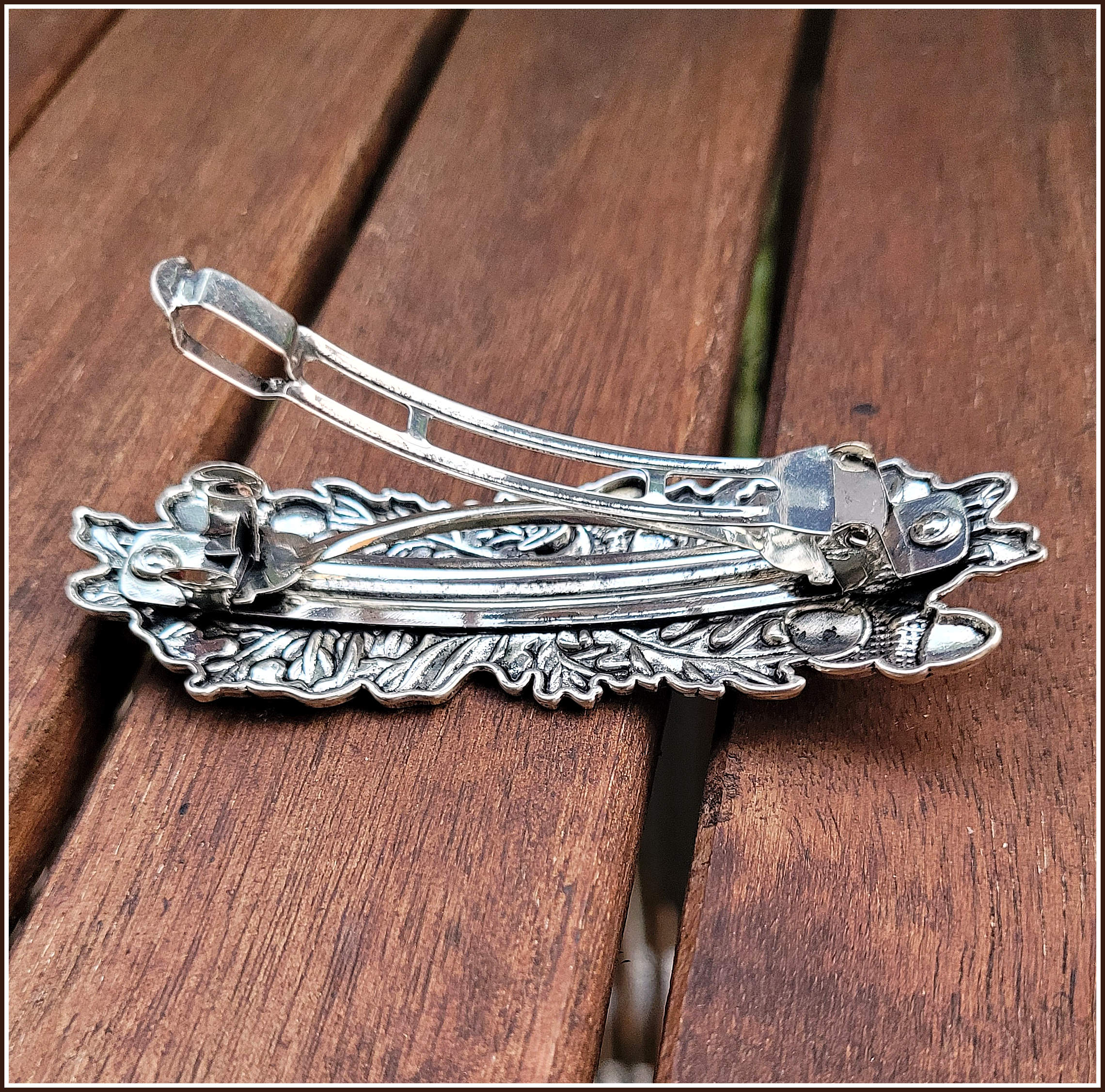 Dieser Haarschmuck stammt leider nicht aus unserer eigenen Werkstatt. Da er uns aber gar so gut gefällt, „mussten“ wir ihn natürlich in unser Sortiment aufnehmen.