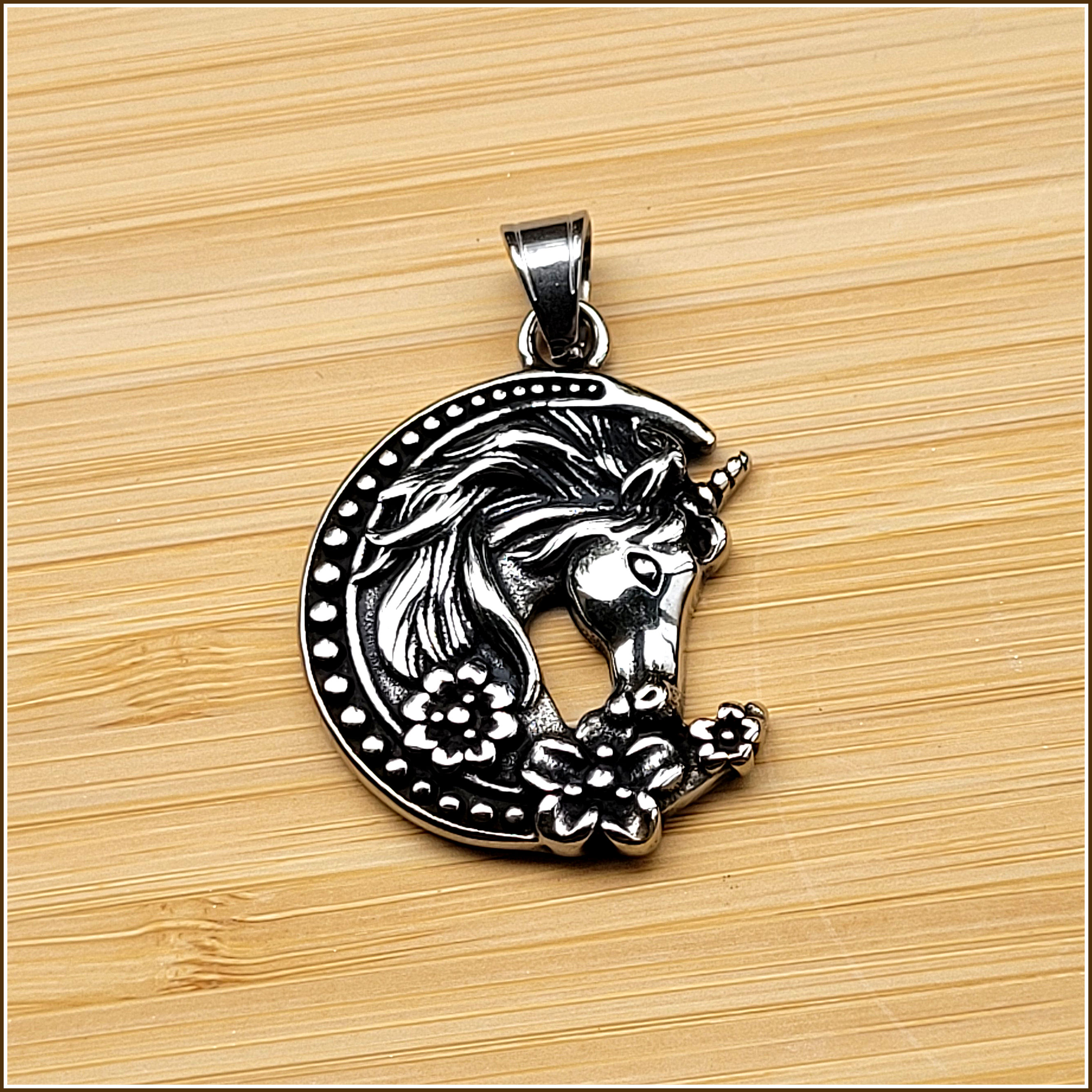 Edelstahl, ein besonders beliebtes, edles Material mit vielen Vorzügen. So wird Edelstahl auch von Allergikern in der Regel sehr gut vertragen. Er ist absolut farb- und formstabil. In der Farbe ähnelt Edelstahl Antiksilber. Dieser Anhänger ist teilweise geschwärzt.