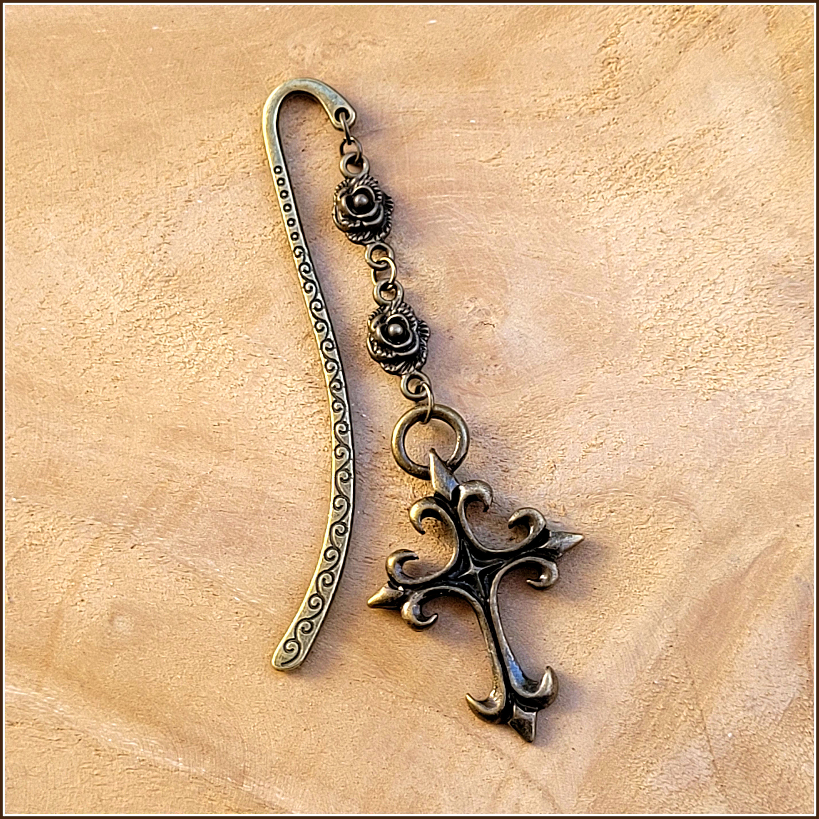 Dieses Lesezeichen verbindet zwei besonders schöne Symbole – Rosen und ein wunderschönes, gothisches Kreuz.
