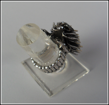 Der stachelige Kerl hat mit einem Format von ca. 3,8 x 2,5 cm eine gut zu tragende Größe – wie gesagt, sofern man an etwas größere Ringe gewöhnt ist.