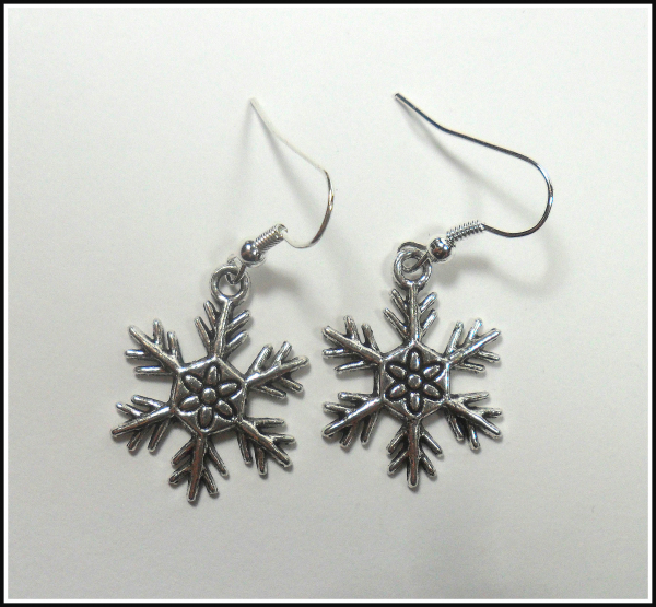 Diese Schneeflocken tragen zwar kein weißes, sondern ein silberfarbenes Gewand und werden die Ohren ihrer Trägerin winterlich schmücken.