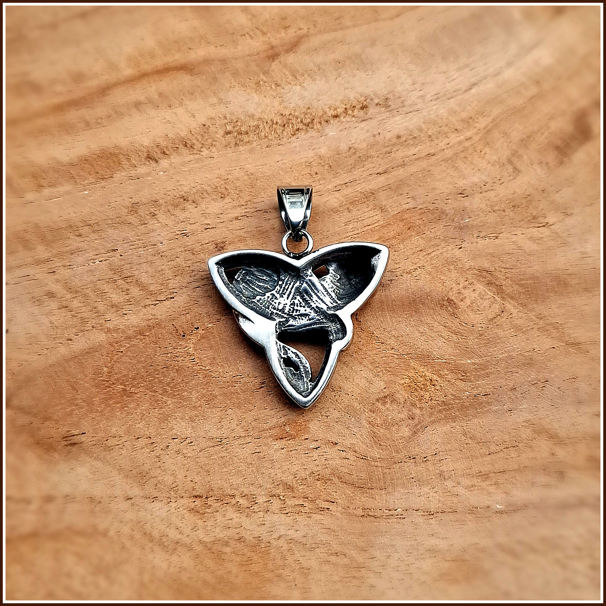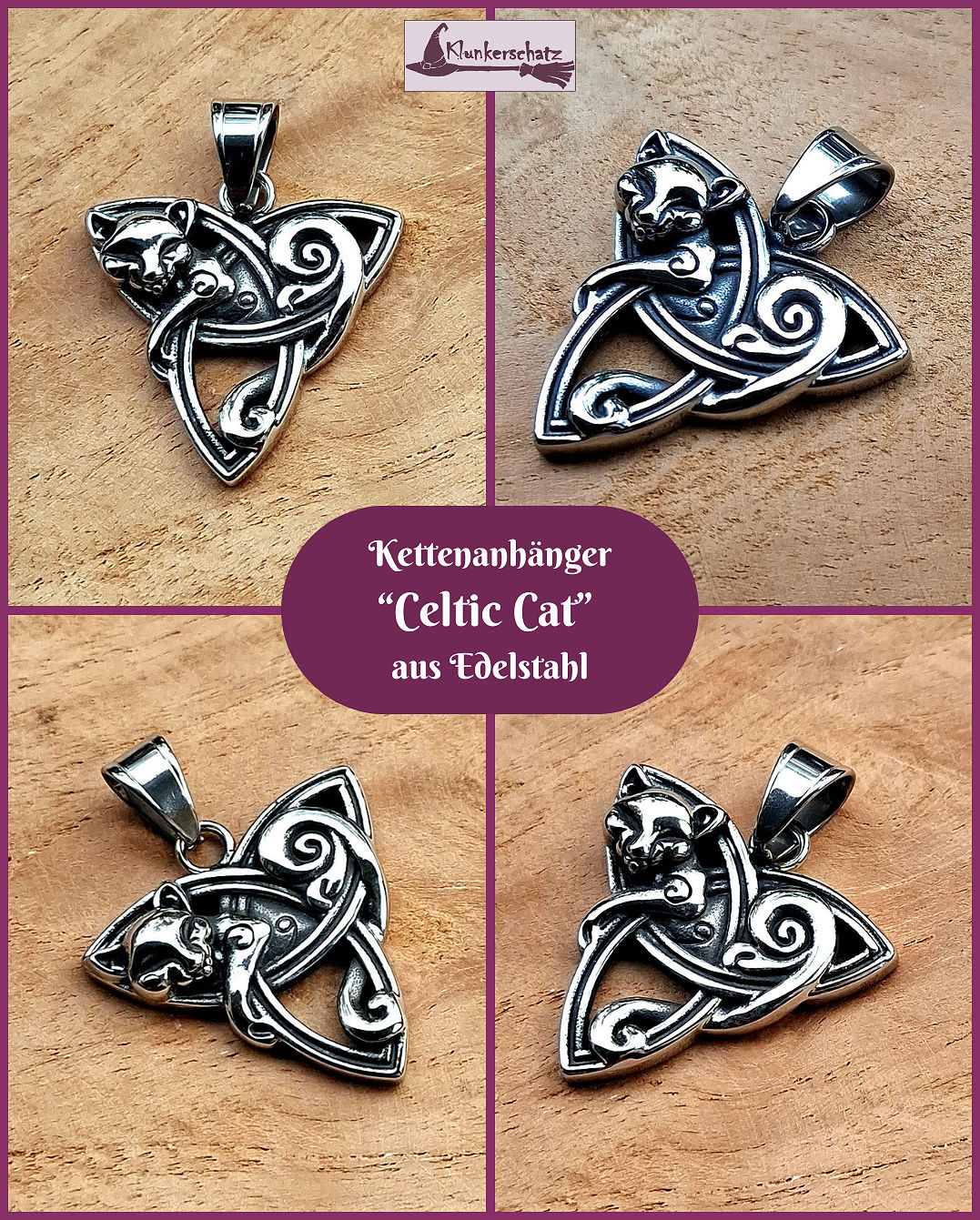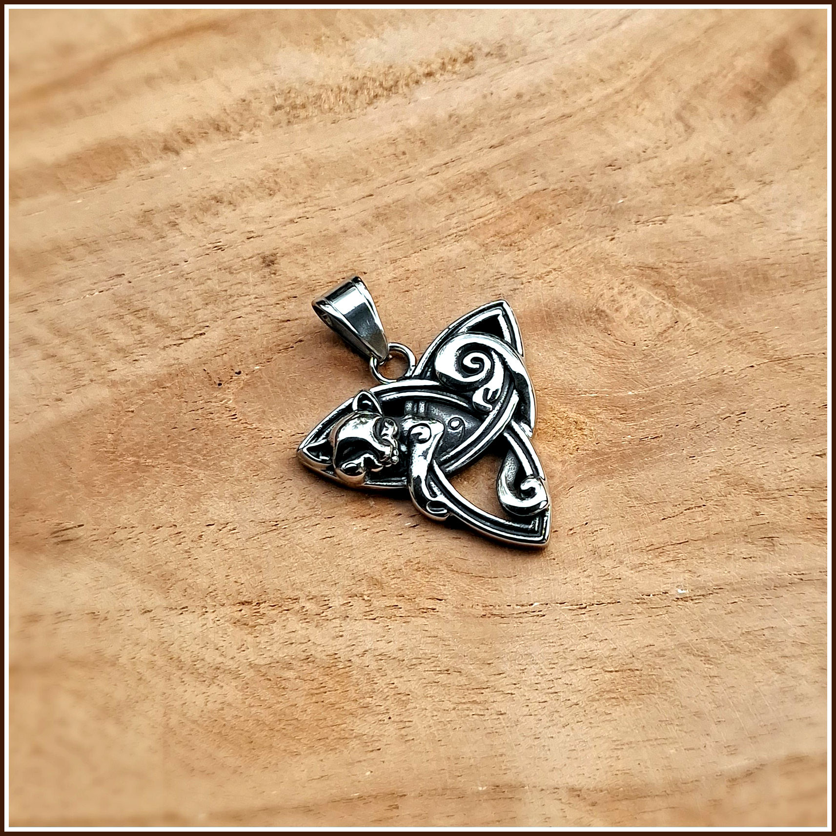 Bei diesem wunderschön gestalteten Kettenanhänger verbinden sich zwei unserer Lieblingssymbole – eine Katze und eine Triqueta.
