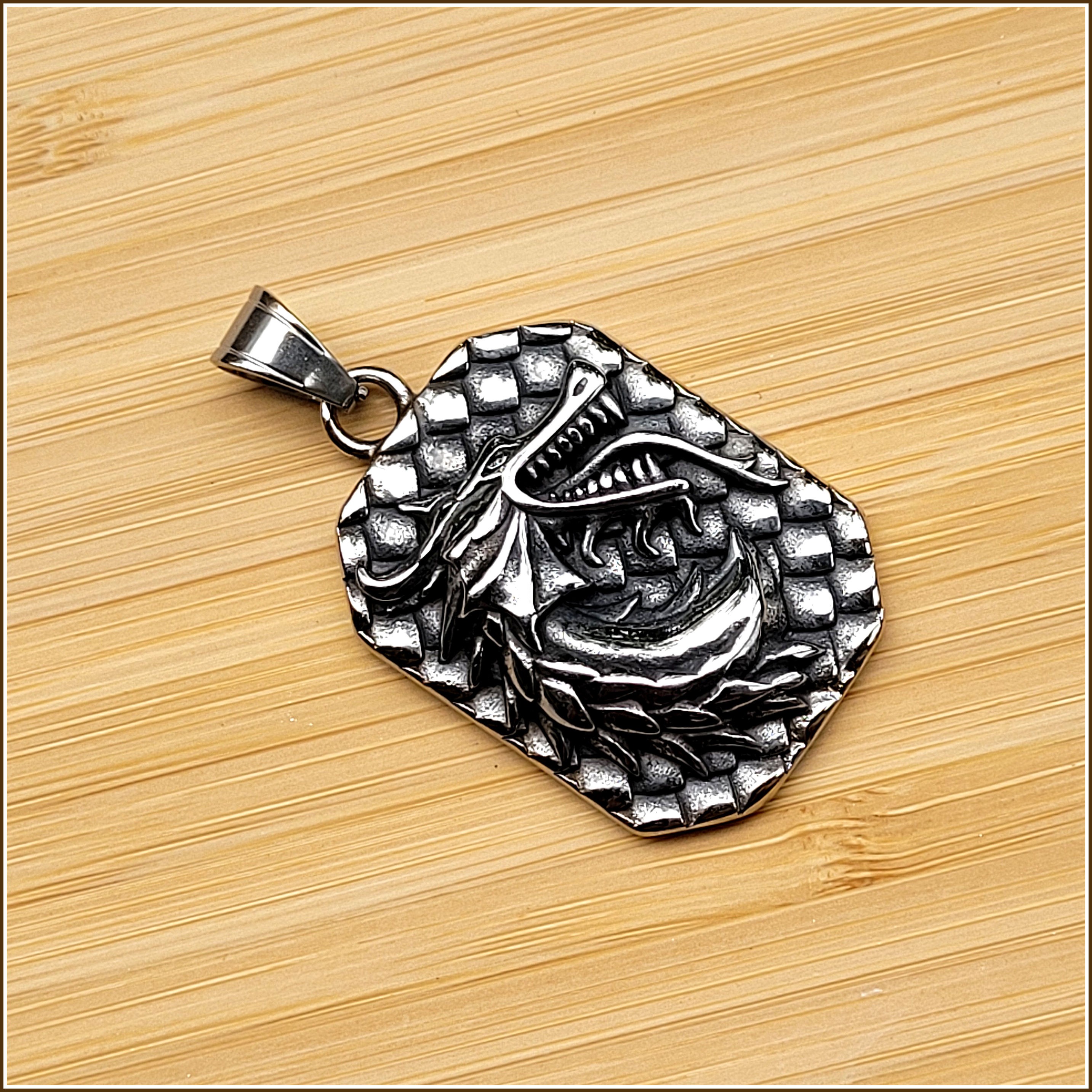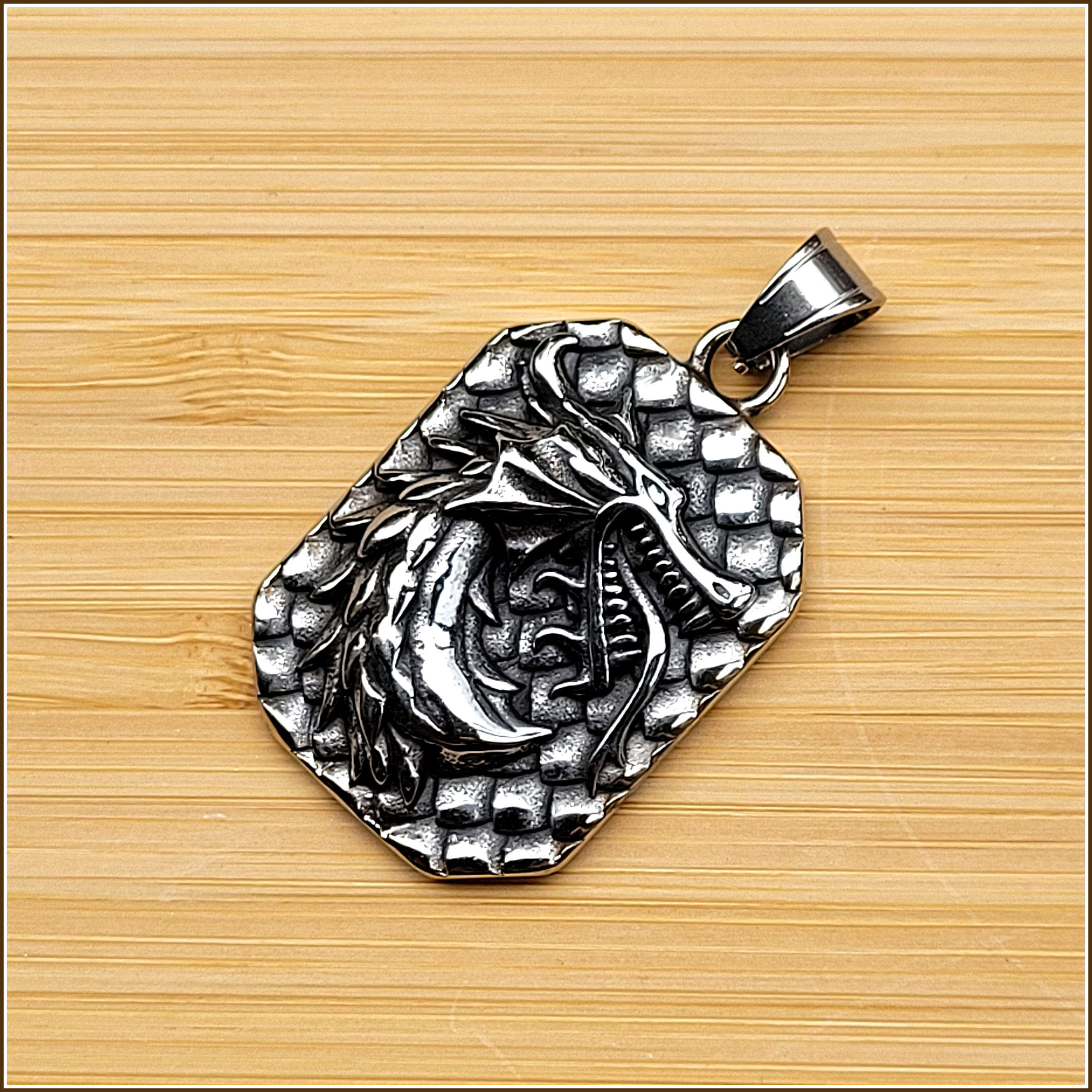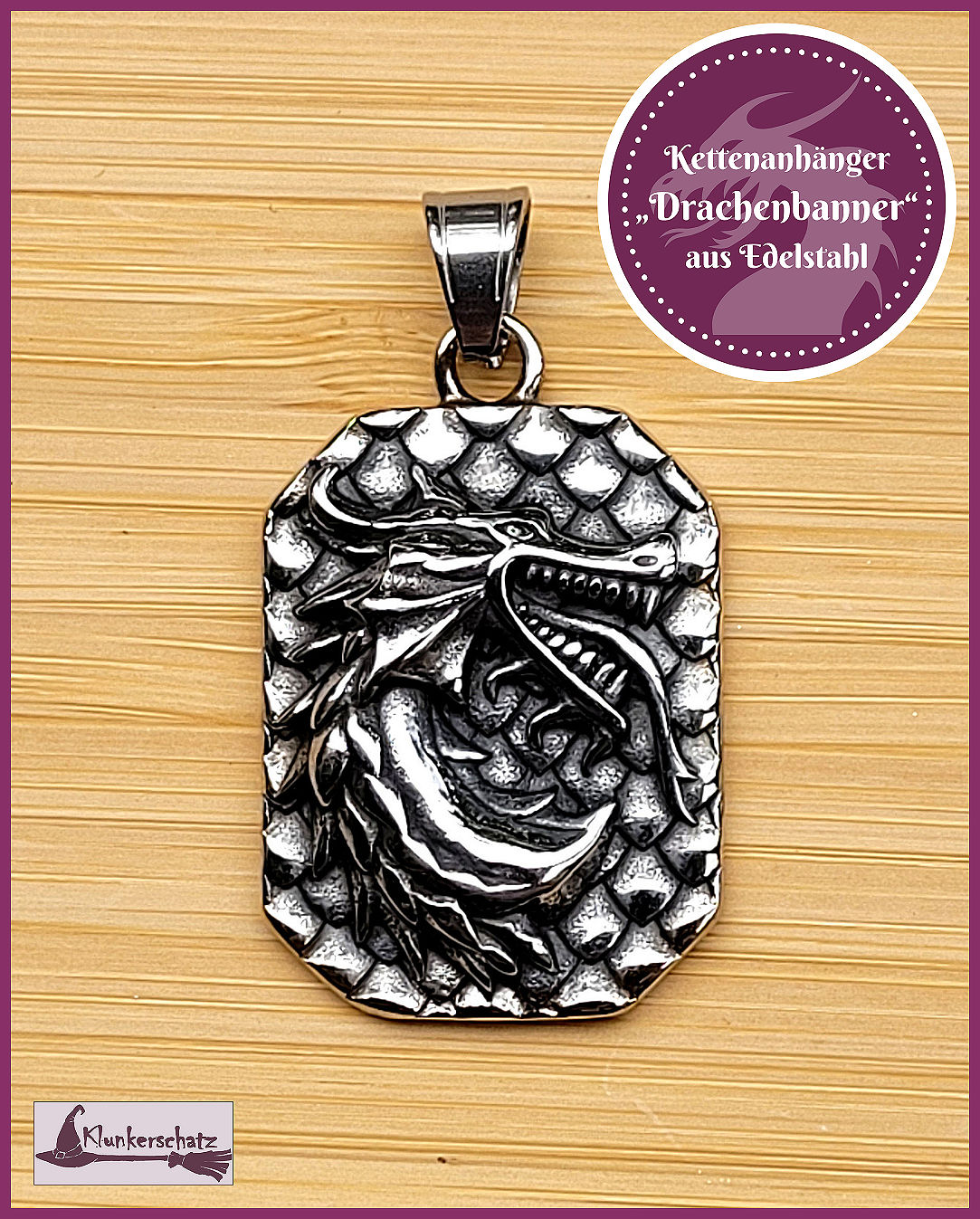 Dieser wunderschöne Kettenanhänger mit Drachenmotiv erinnert an eines jener Banner, die auf Ritterturnieren von jenem Ritter getragen wurden, der sich den Drachen als Vorbild oder Begleiter und Schutztier gewählt hat.