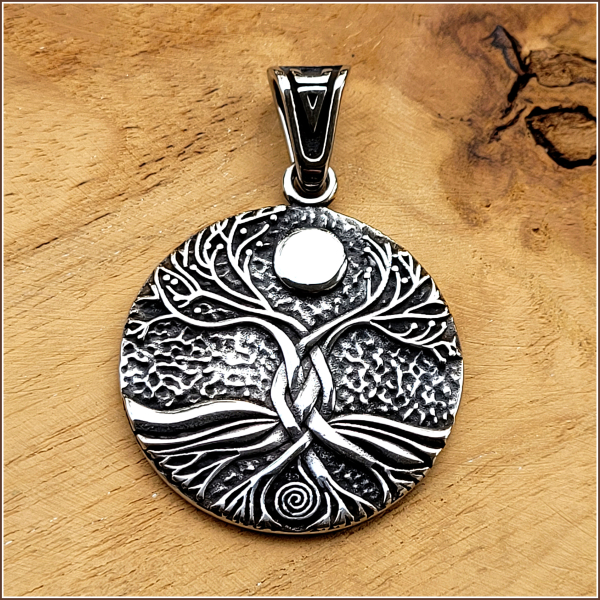 Bei diesem Anhänger verbinden sich zwei kraftvolle Symbole – der Lebensbaum und der Mond, genauer gesagt, der Vollmond!