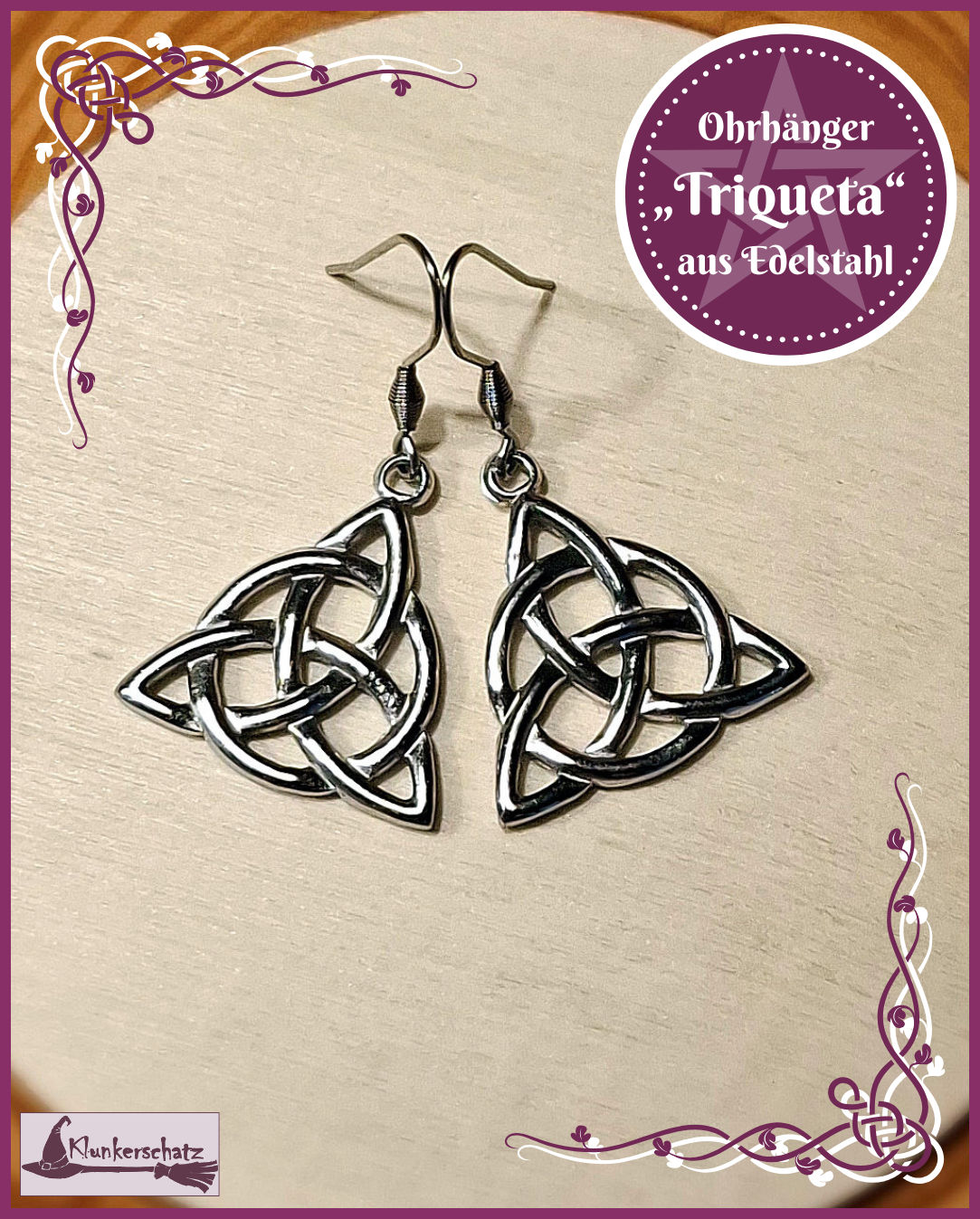 Die Triqueta (oder auch Triquetta oder Triquetra genannt) findet sich schon seit Jahrtausenden im Symbolismus verschiedener Kulturen; am vertrautesten dürfte sie uns heute aus dem Keltischen, bzw. aus der Kult-Fernsehserie „Charmed“ sein, wo sie das „Buch der Schatten“ zierte. Dort steht sie für „Die Macht der Drei“, und ähnlich war die Bedeutung auch in alten Zeiten, wo die Triqueta z. B. für die „Dreifaltige Göttin“ in ihrer Erscheinung als Jungfrau, als Frau im gebärfähigen Alter und als weise Alte, stand aber auch für die „Drei“ in unser aller Leben – für Geburt, Leben und Tod. Die Drei – und damit auch die Triqueta – steht aber auch für Körper, Seele/Psyche und Geist sowie für Vergangenheit, Gegengenwart und Zukunft.